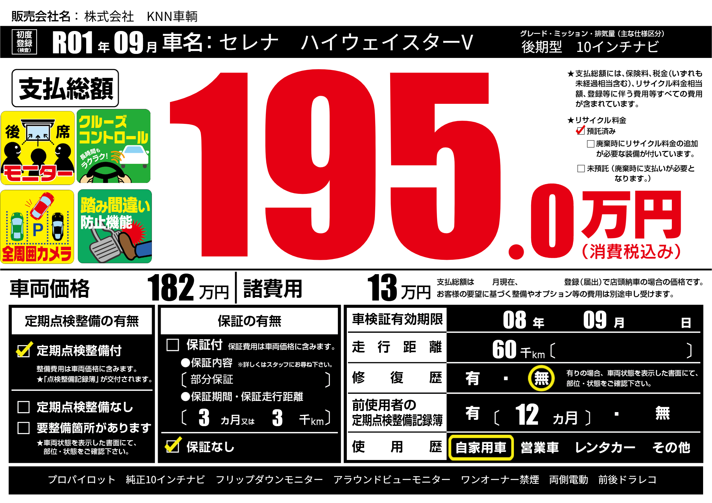 | 走行キロ | 6万km | 初年度登録 | R01年09月 |