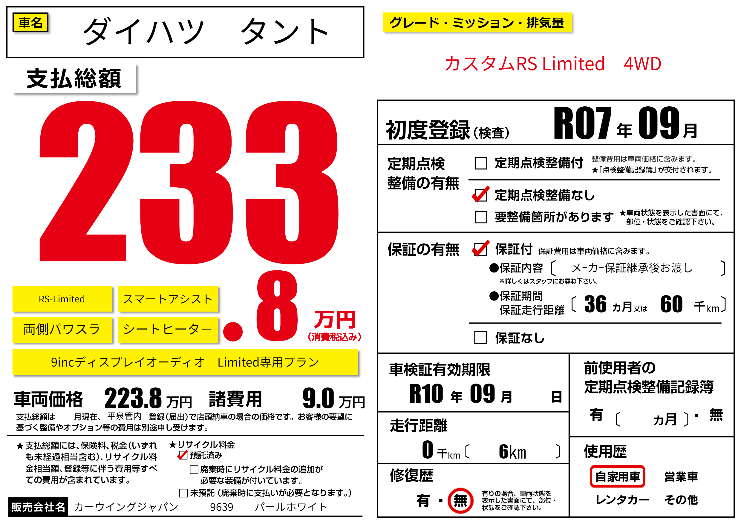 | 走行キロ | - | 初年度登録 | R07年09月 |