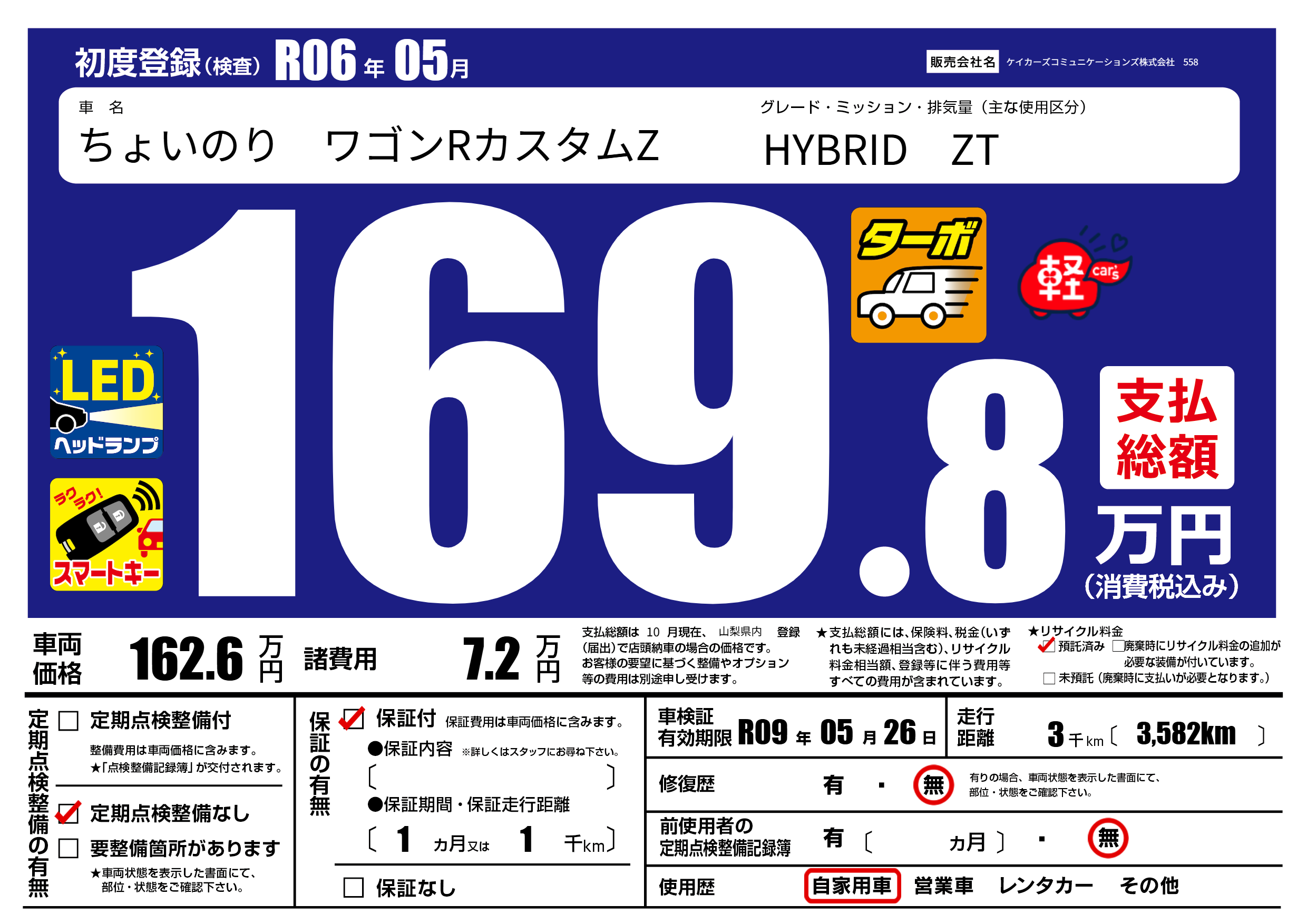 | 走行キロ | 0.3万km | 初年度登録 | R06年05月 |
