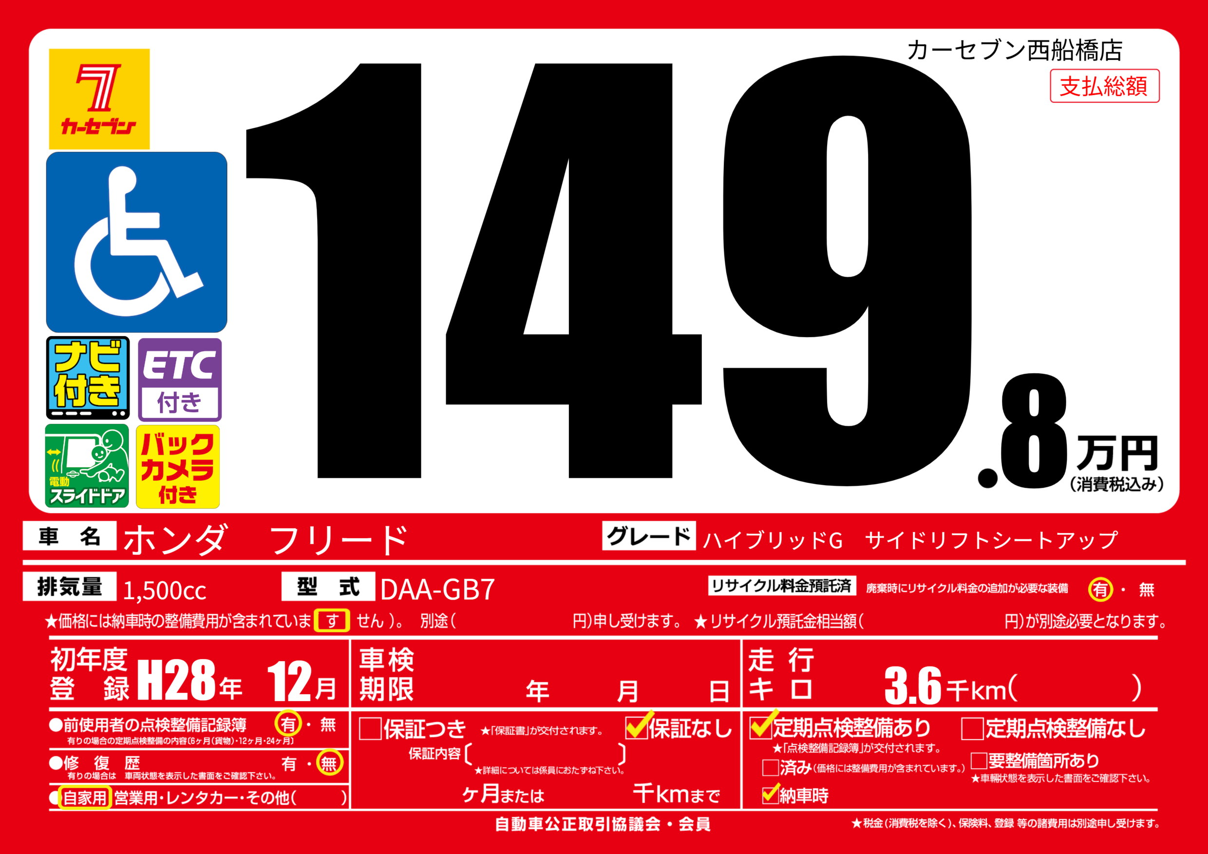 | 定期点検整備 | 定期点検整備あり 納車時あり | ||