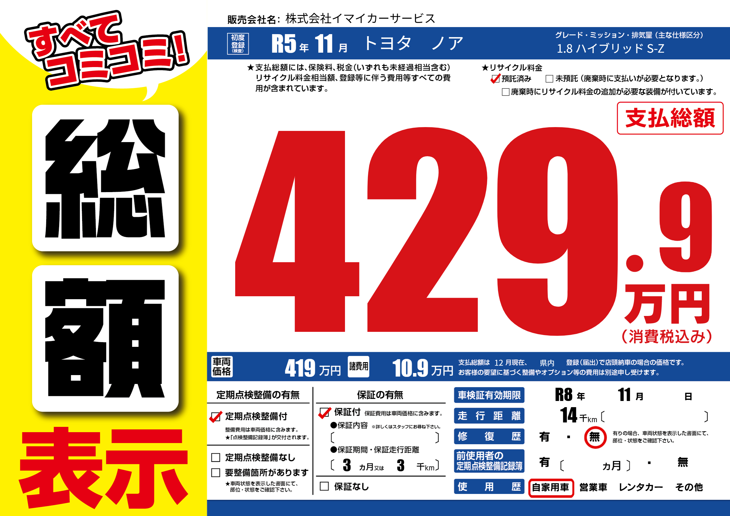 | 走行キロ | 1.4万km | 初年度登録 | R5年11月 |