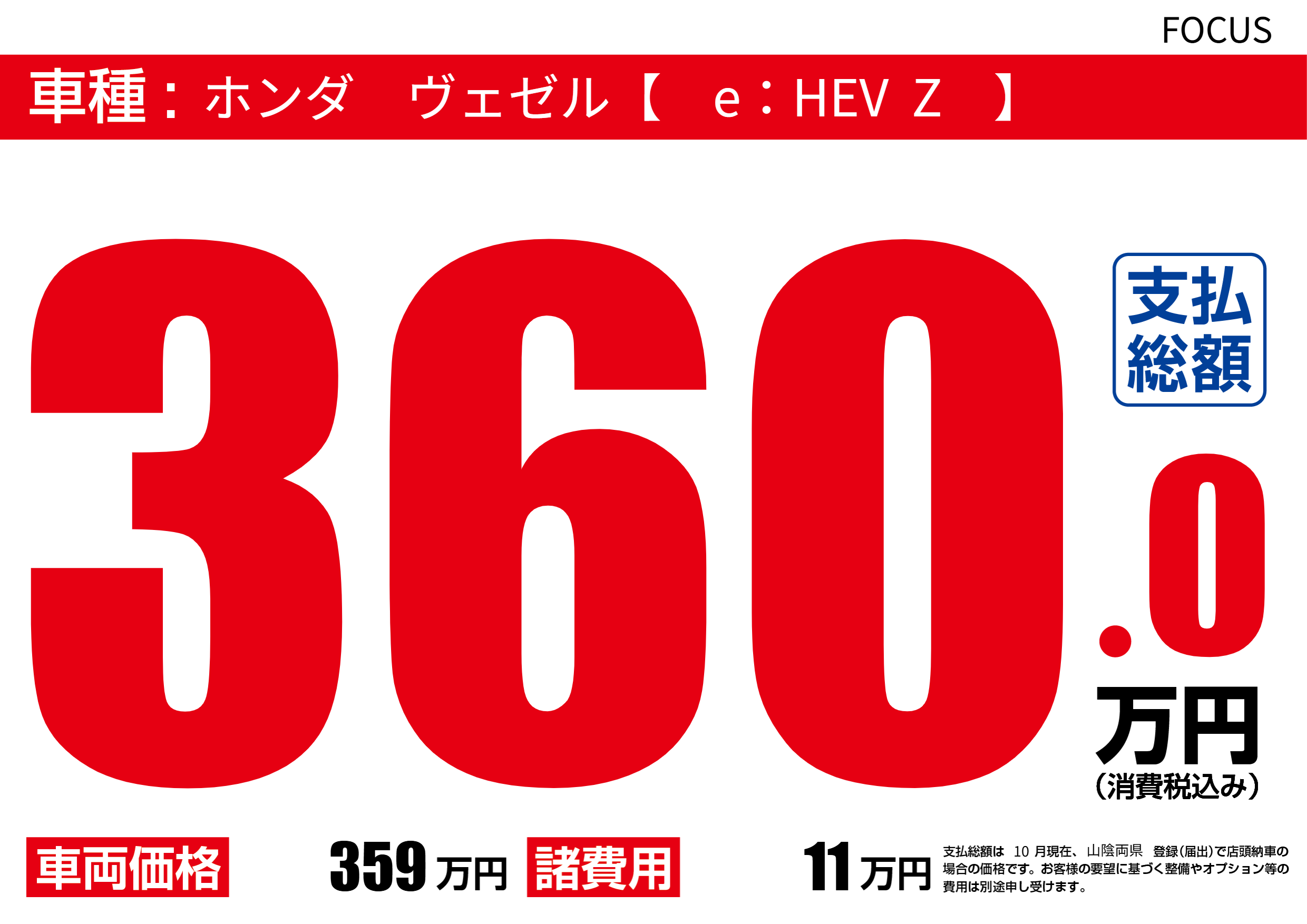 | 車名 | ホンダ ヴェゼル【 e:HEV Z 】 | グレード ミッション 排気量 |