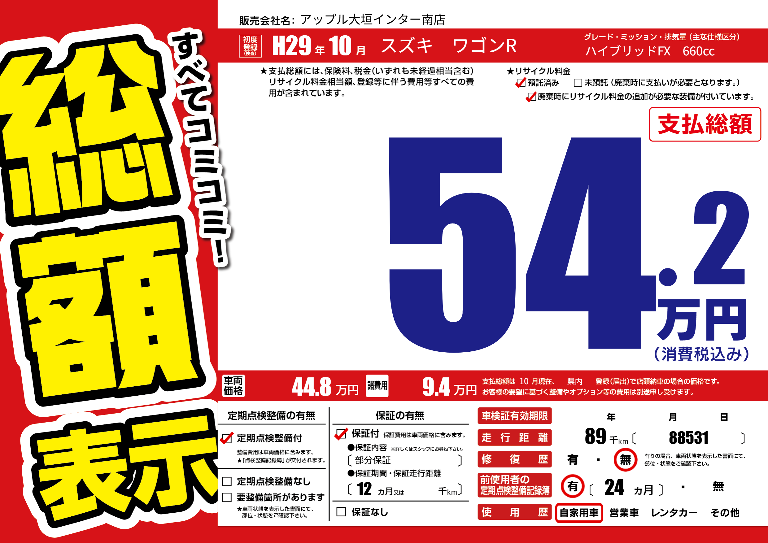 | 走行キロ | 8.9万km | 初年度登録 | H29年10月 |