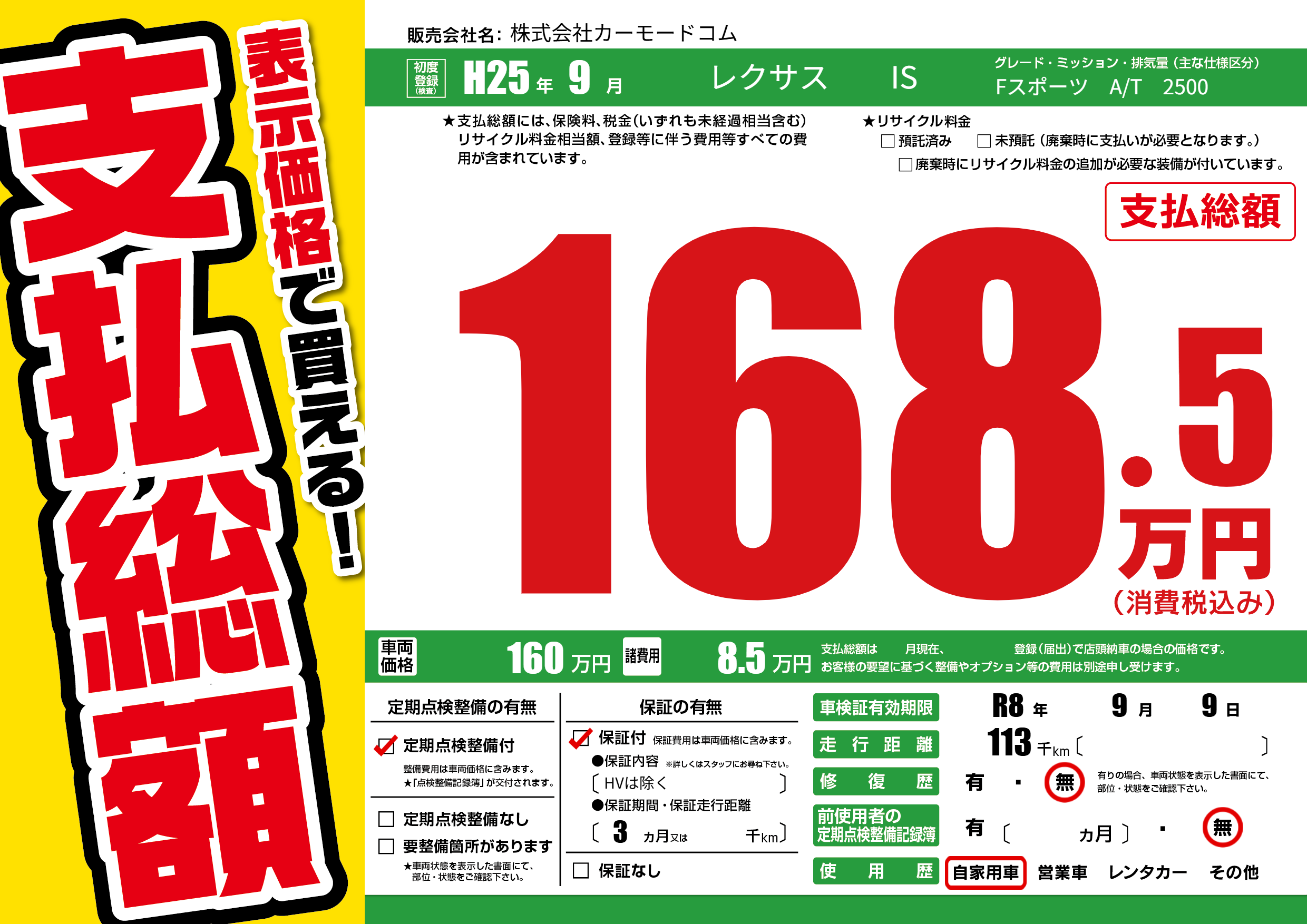 なし | 車検制限 | R8年9月9月 |