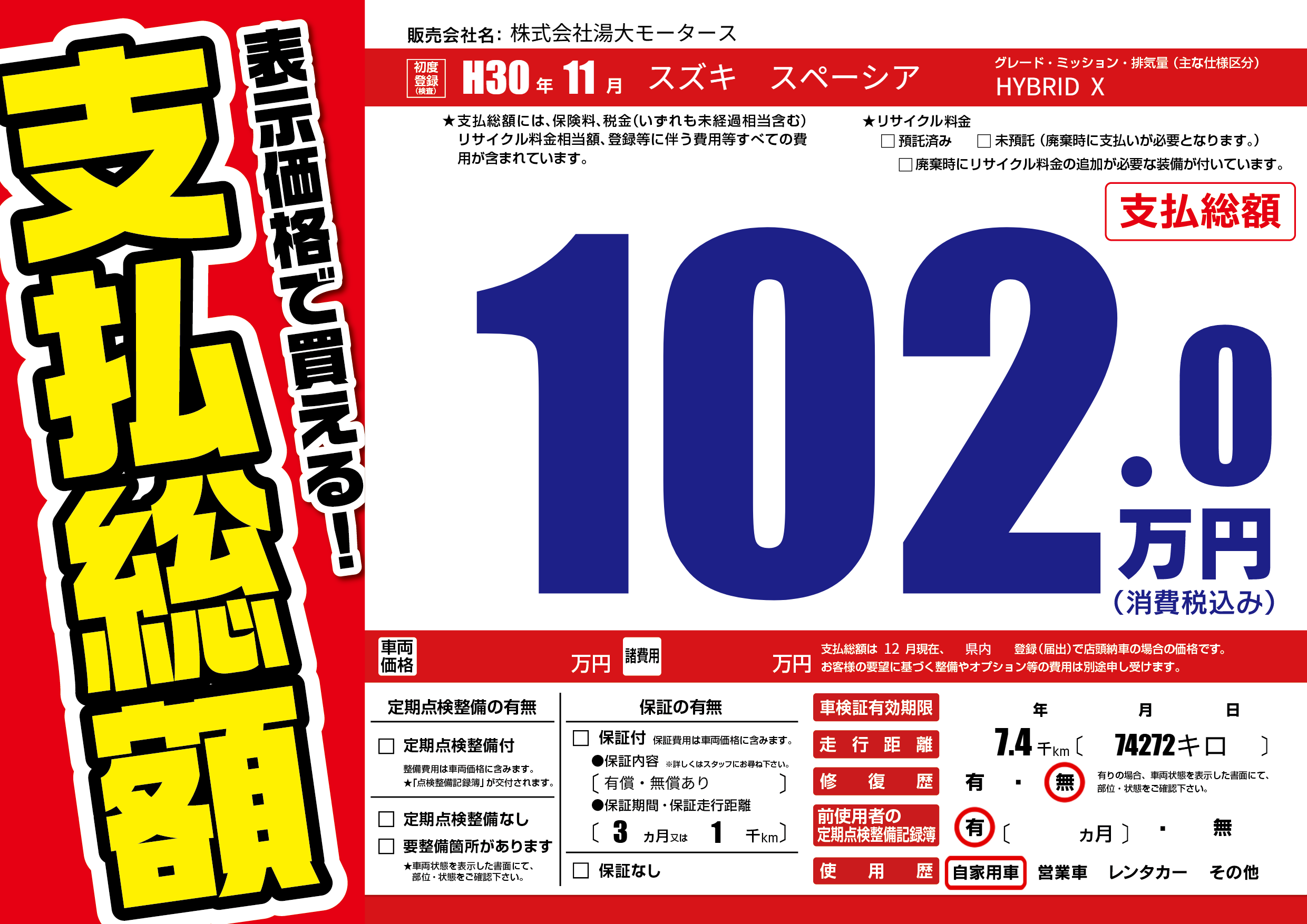 | 車検制限 | - 年 - 月 - 日 | ||
