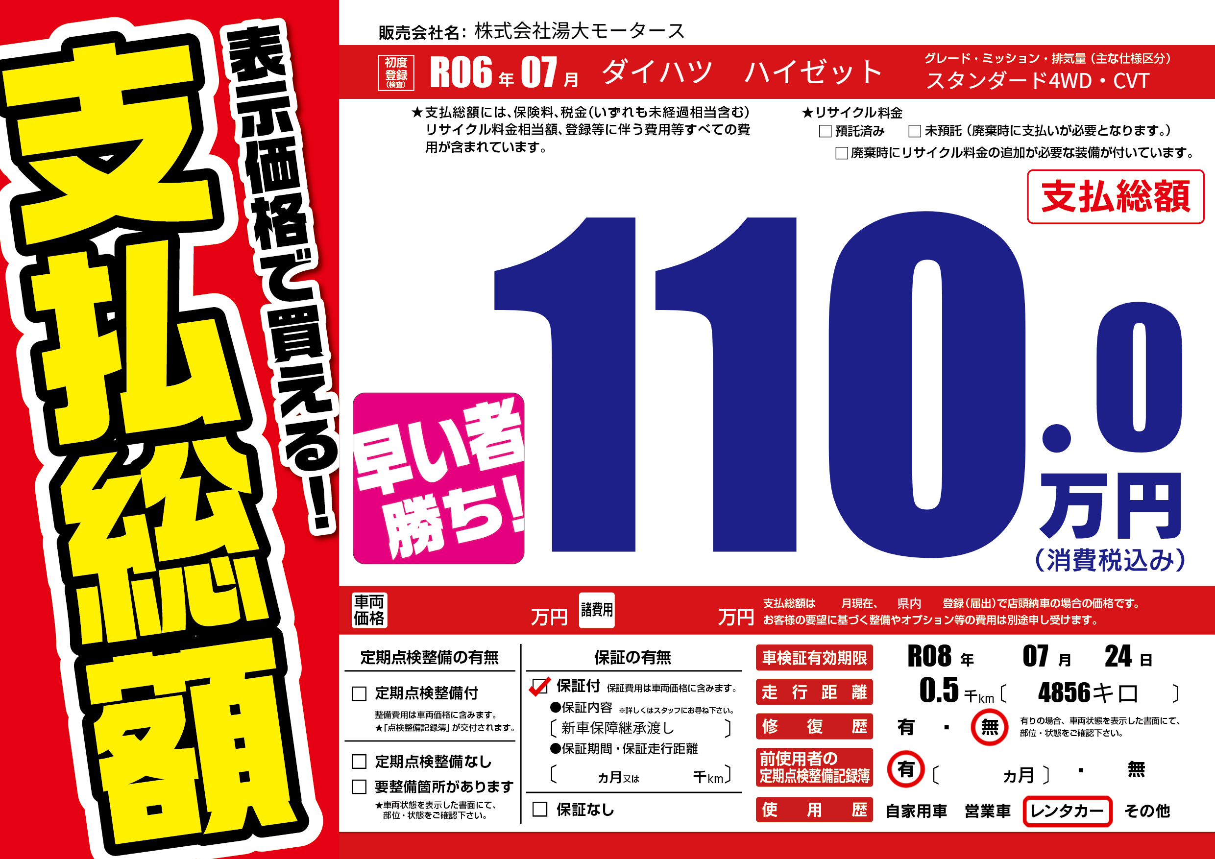 | 走行キロ | - | 初年度登録 | R06年07月 |