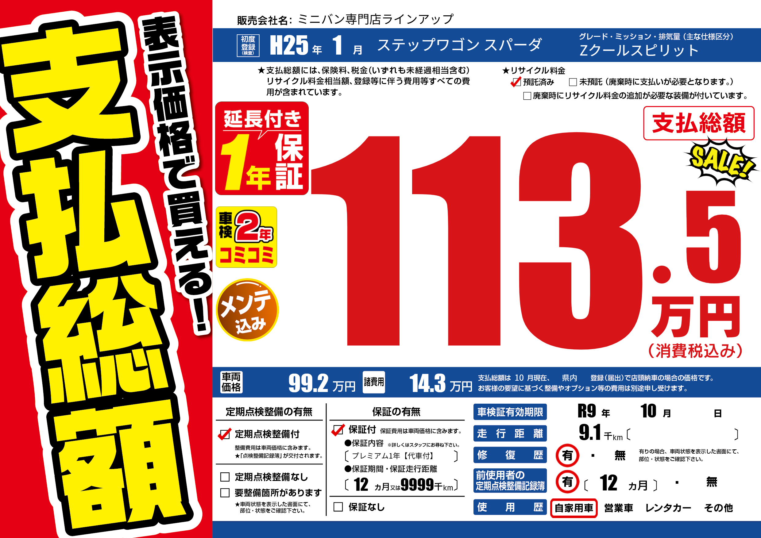 | 車検制限 | R9年 10月 - 日 | ||