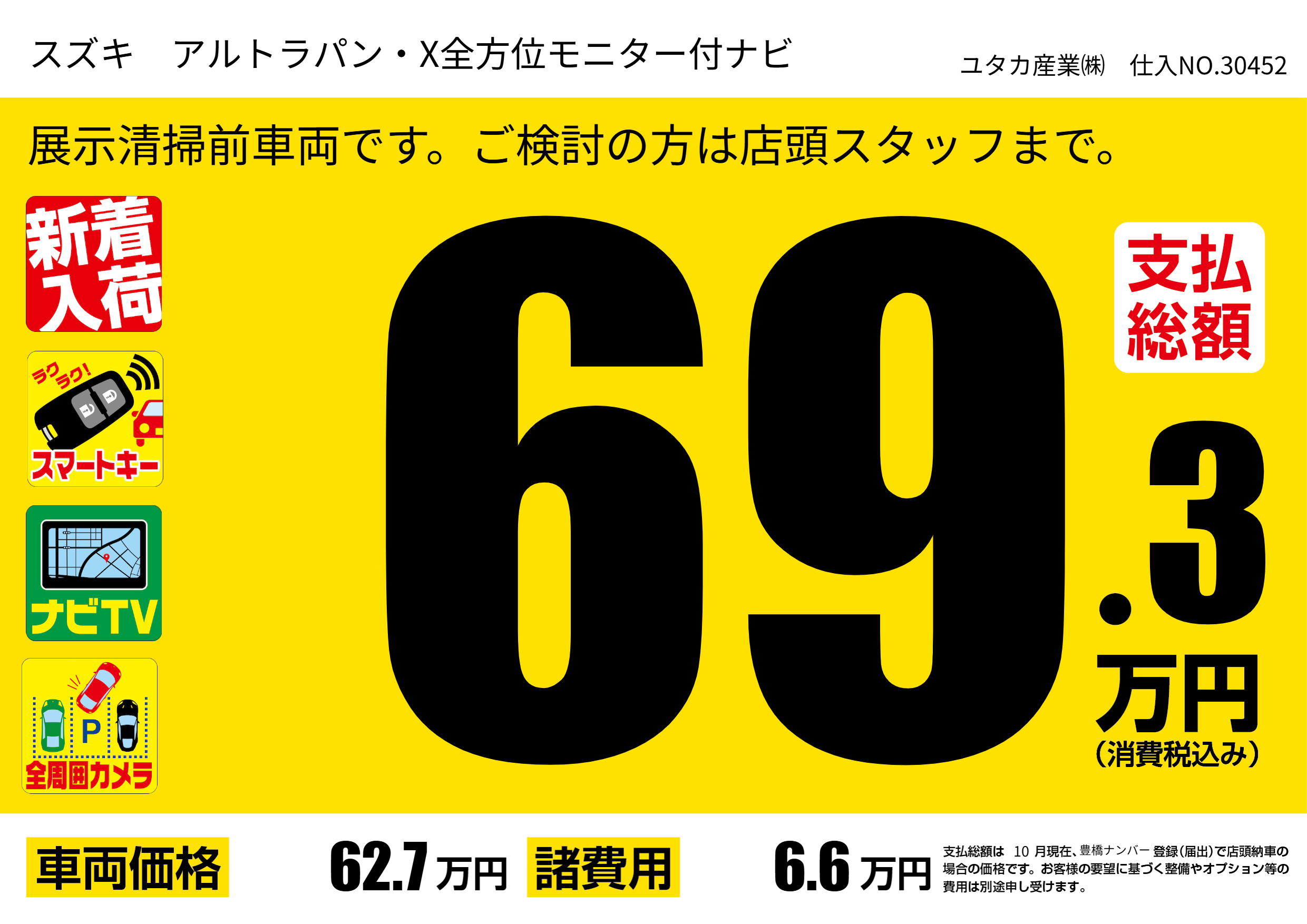 | 車名 | スズキ アルトラパン・X全方位モニター付ナビ | グレード ミッション 排気量 |