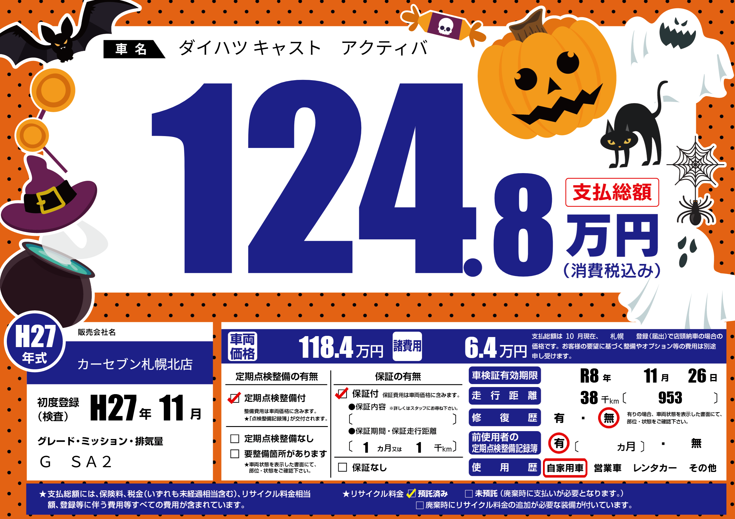 なし | 車検制限 | R8年11月26月 |