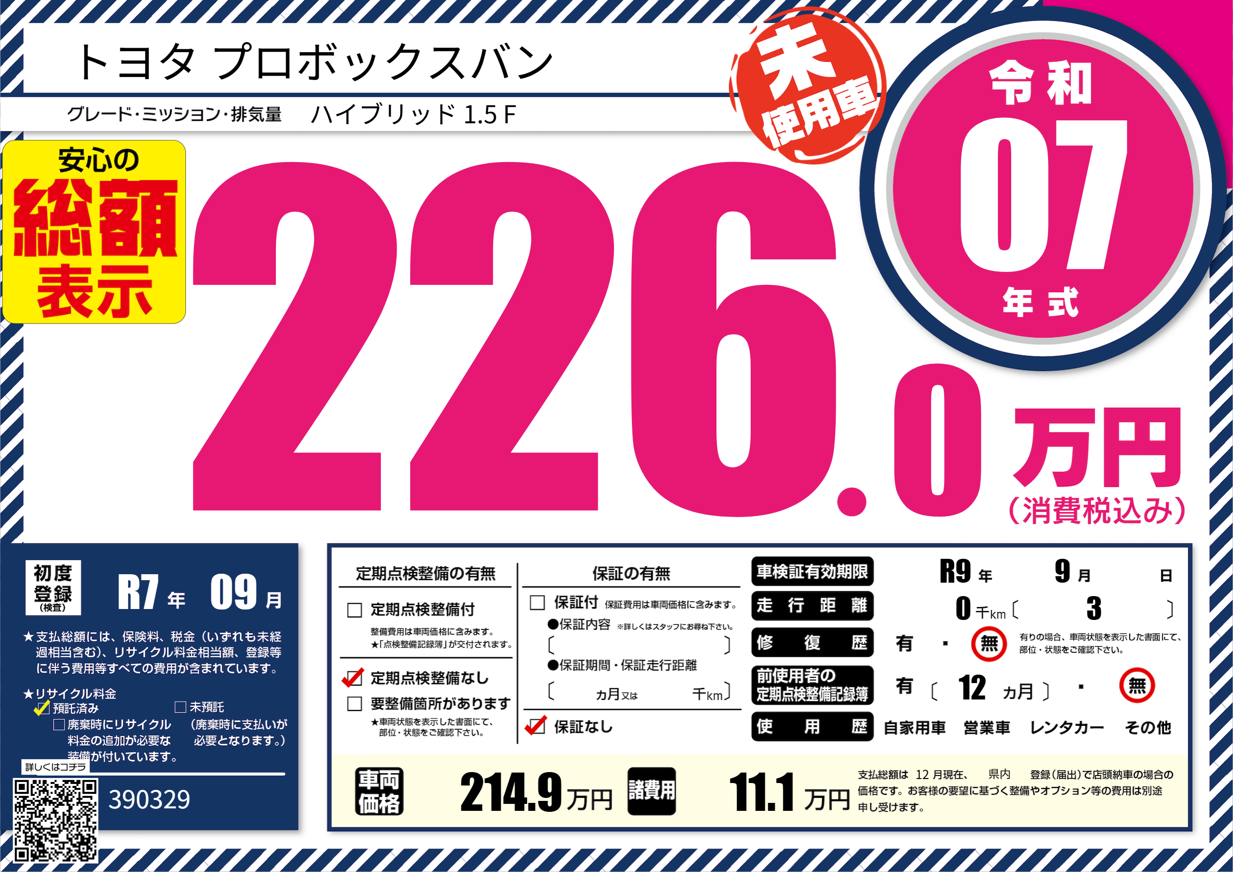 なし | 車検制限 | R9年9月---月 |