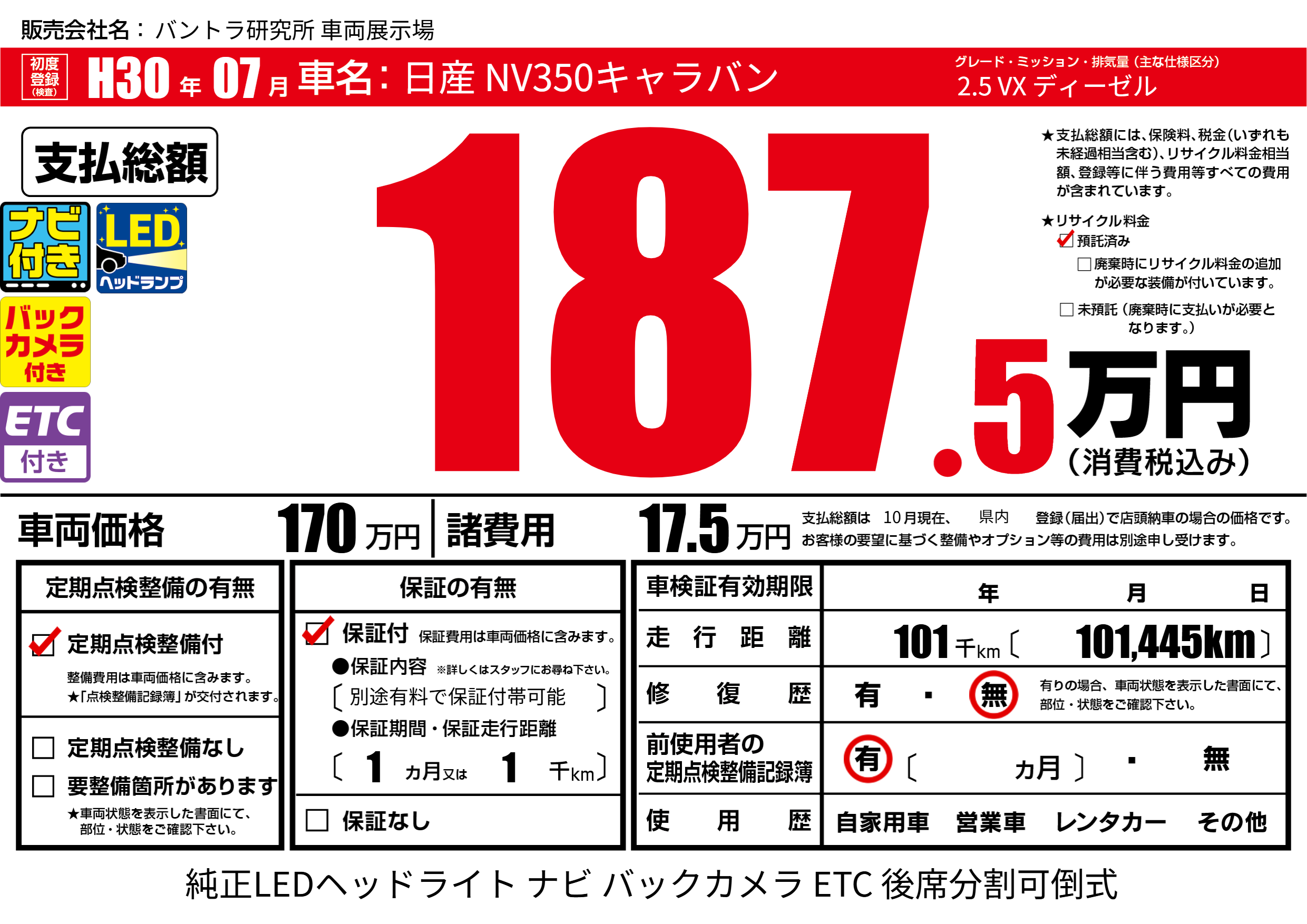 保証内容(別途有料で保証付帯可能) 1ヶ月または1千km