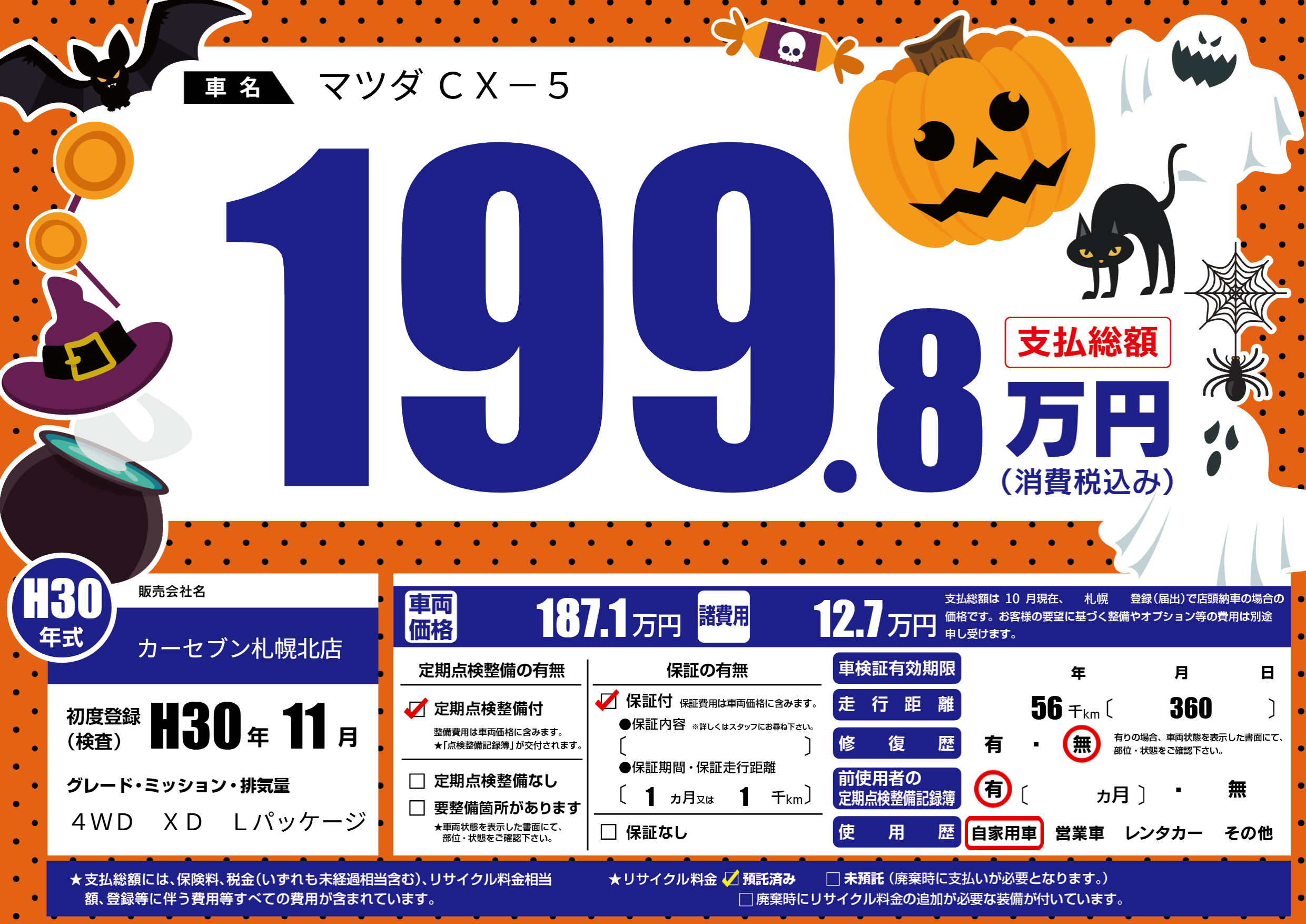 | 走行キロ | 5.6万km | 初年度登録 | H30年11月 |