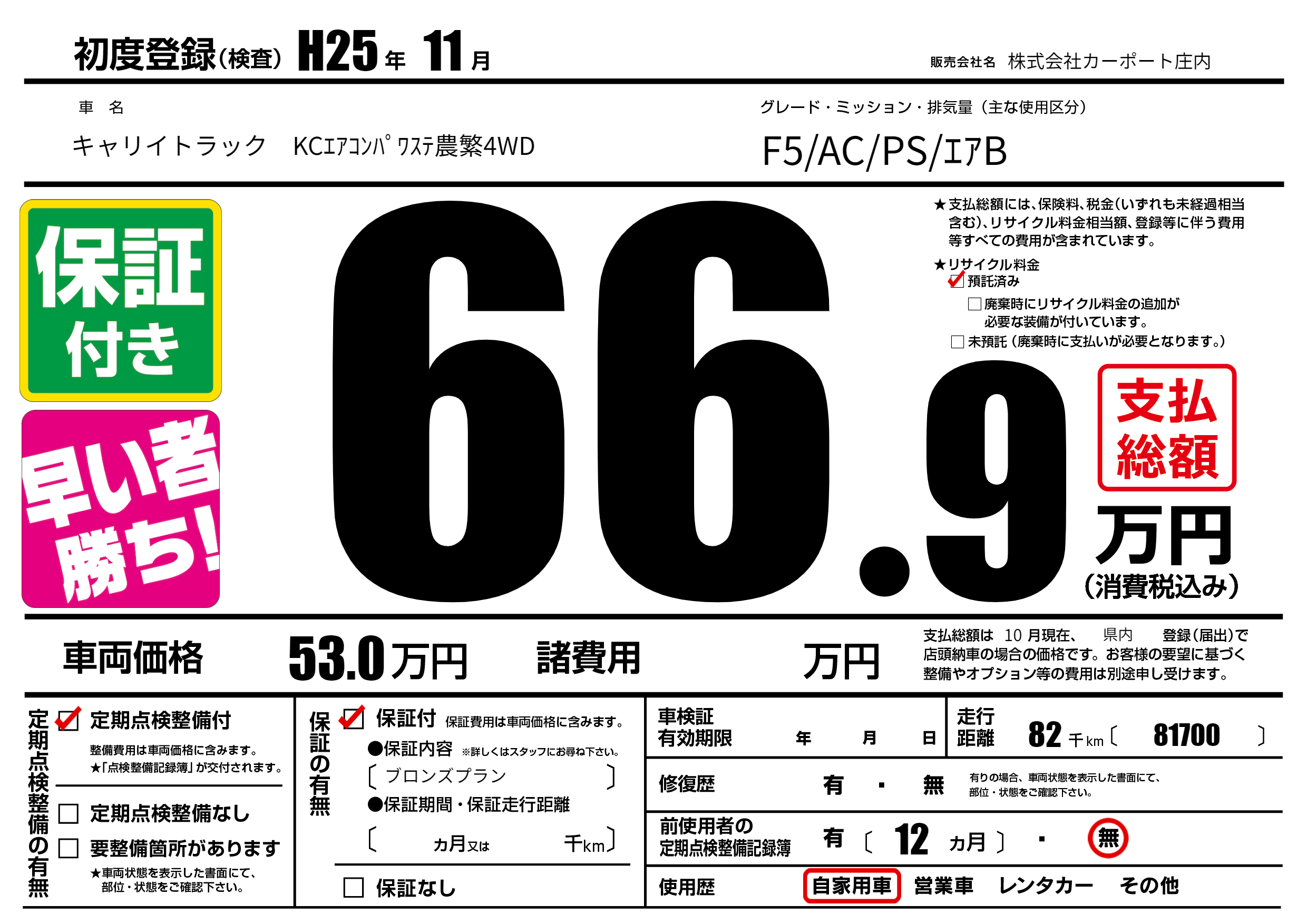 | 定期点検整備 | 定期点検整備あり | ||