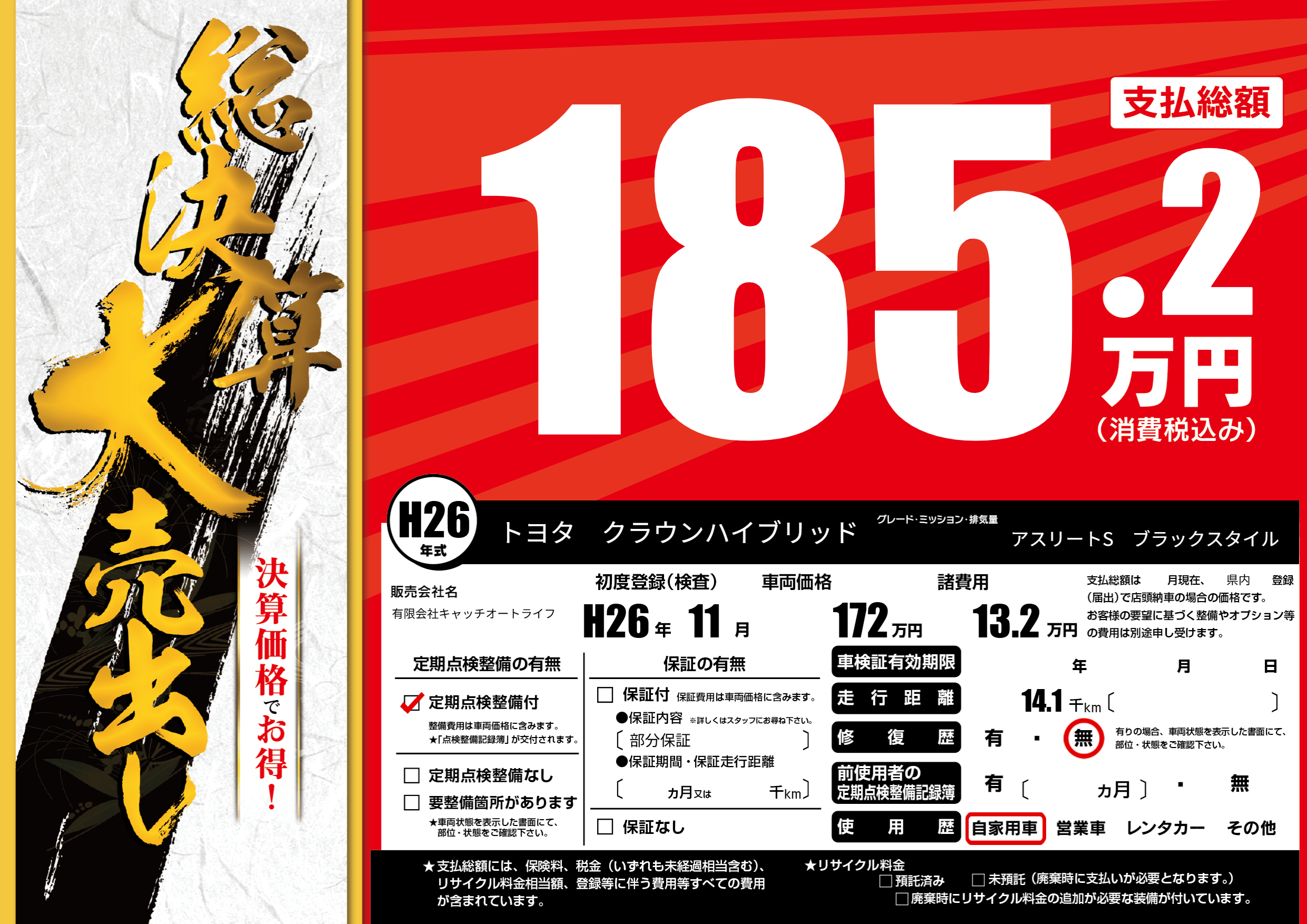 | 車名 | トヨタ クラウンハイブリッド | グレード ミッション 排気量 |
