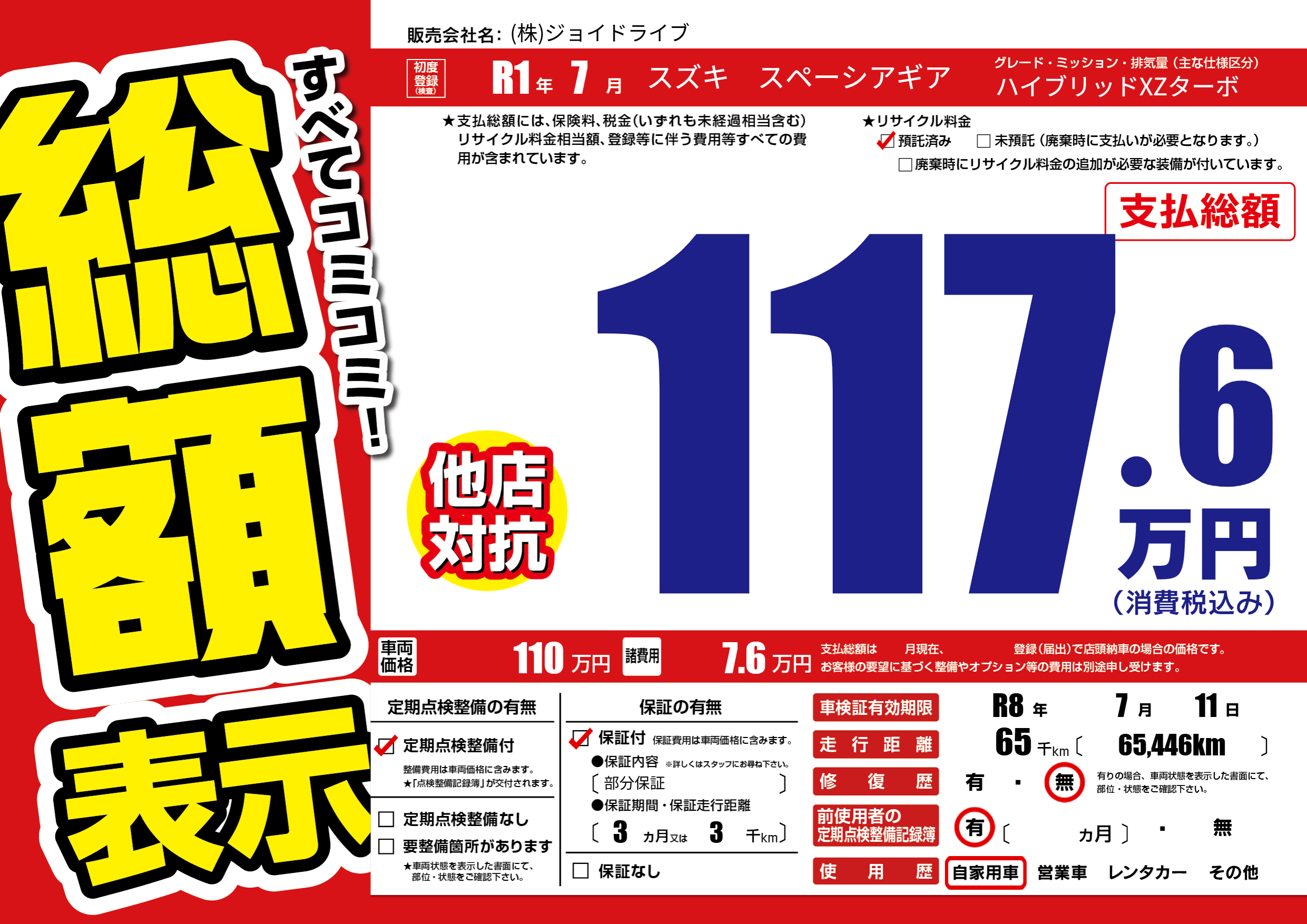 | 車検制限 | R8年 7月 11日 | ||