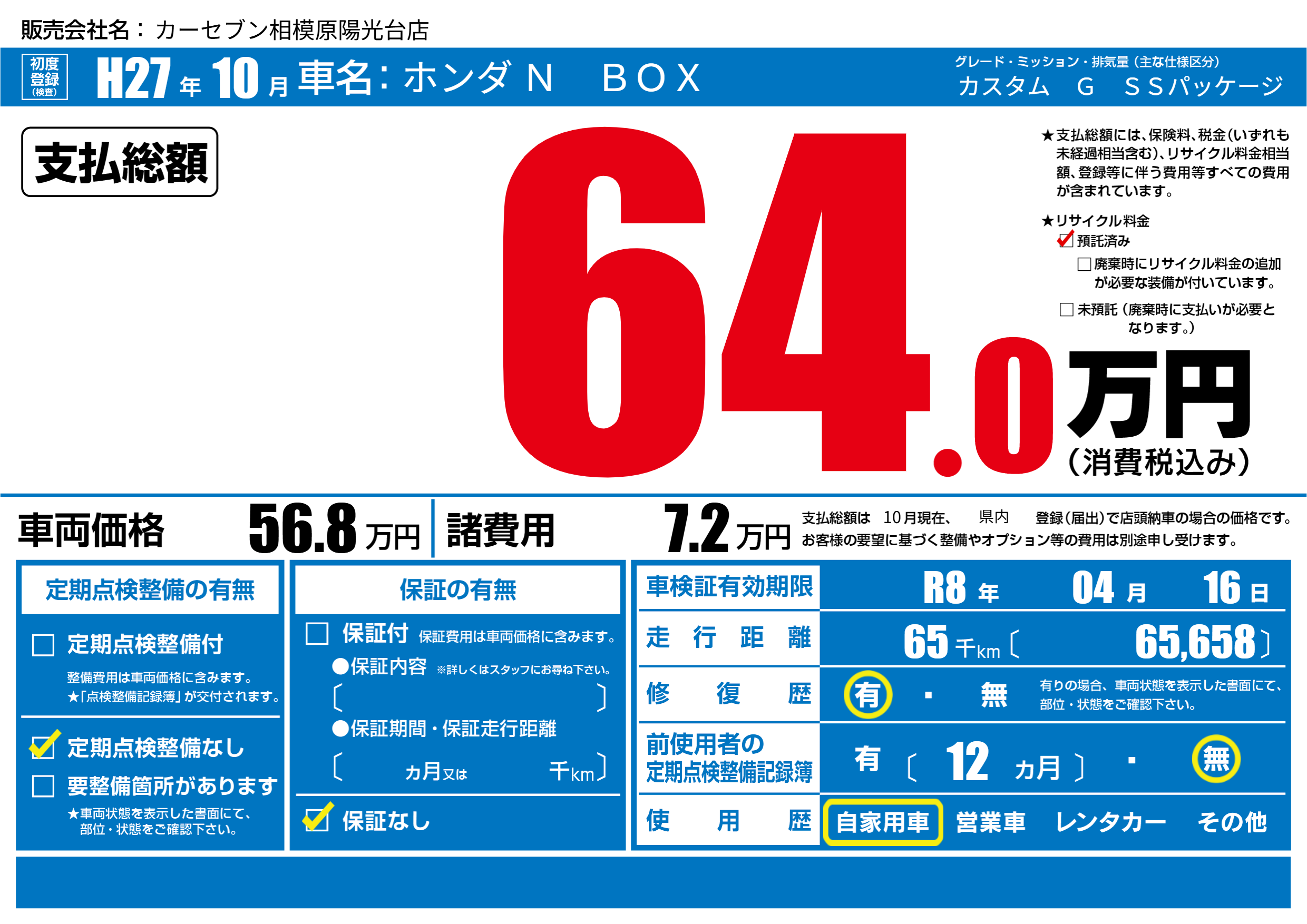 なし | 車検制限 | R8年04月16月 |
