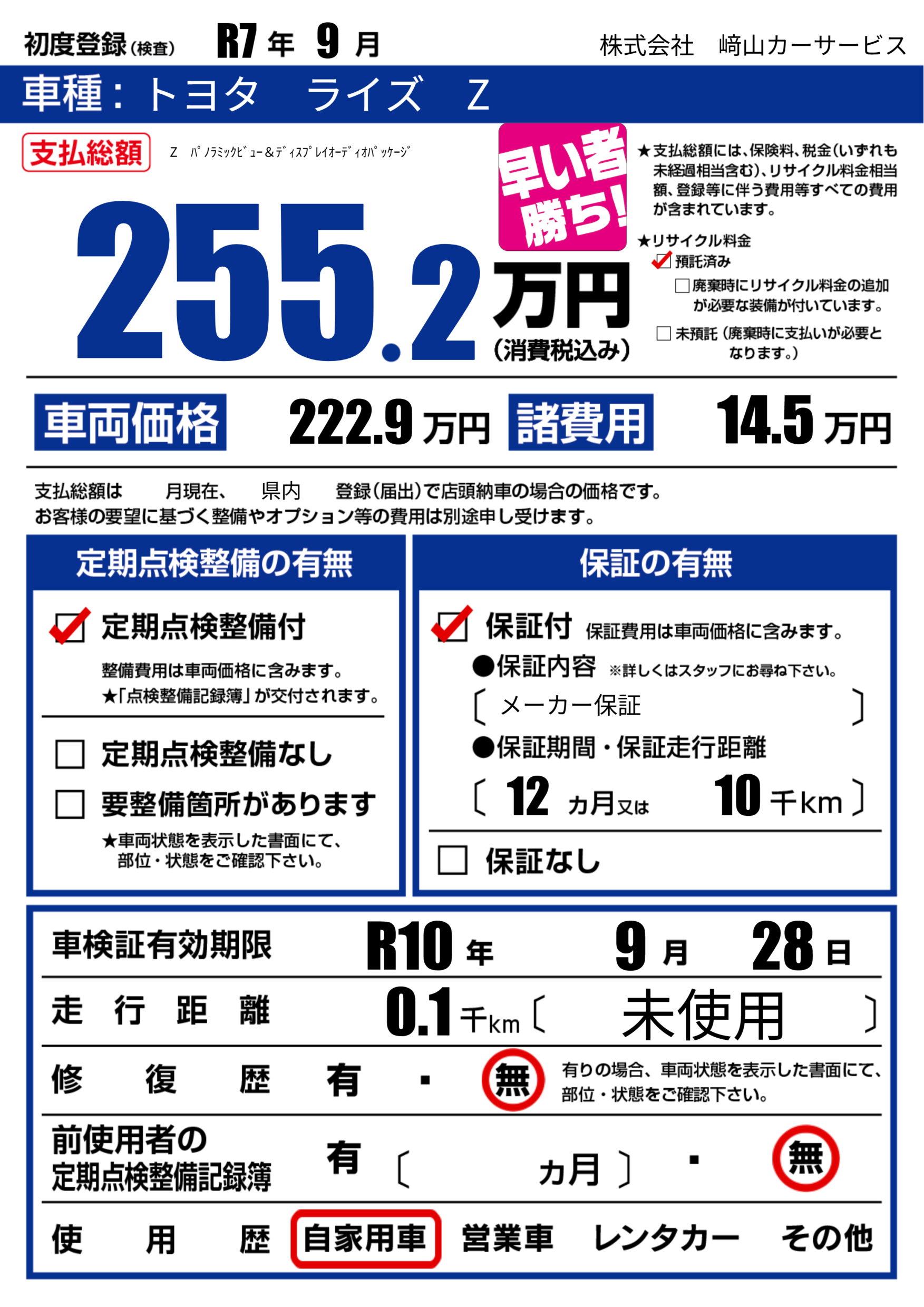 | 初年度登録 | R7年9月 | ||