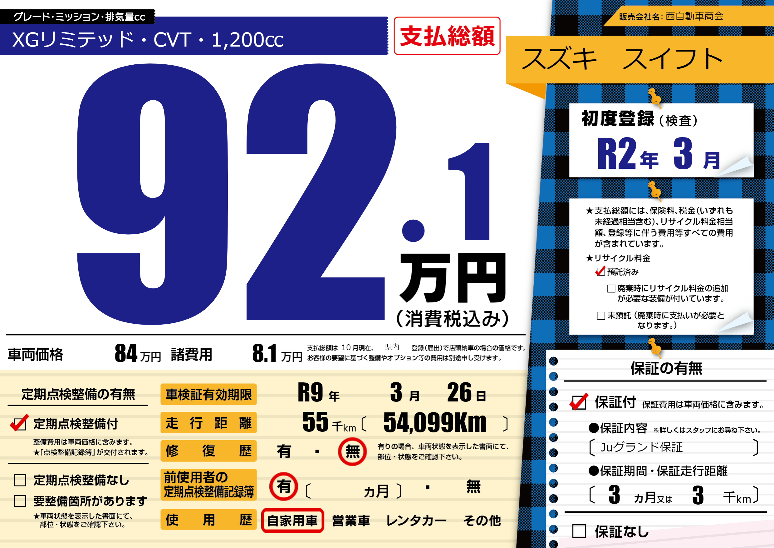 なし | 車検制限 | R9年3月26月 |