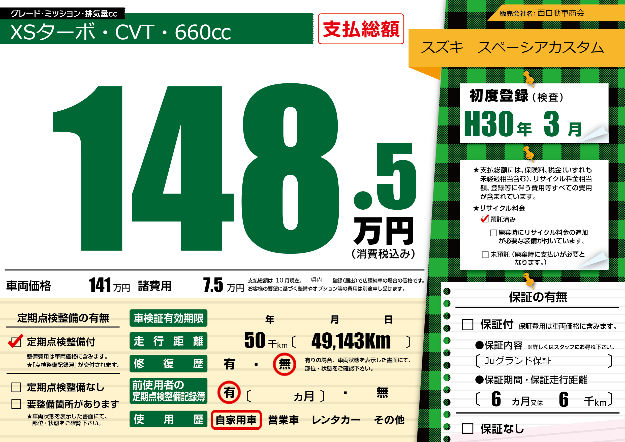 保証内容(Juグランド保証) 6ヶ月または6千km