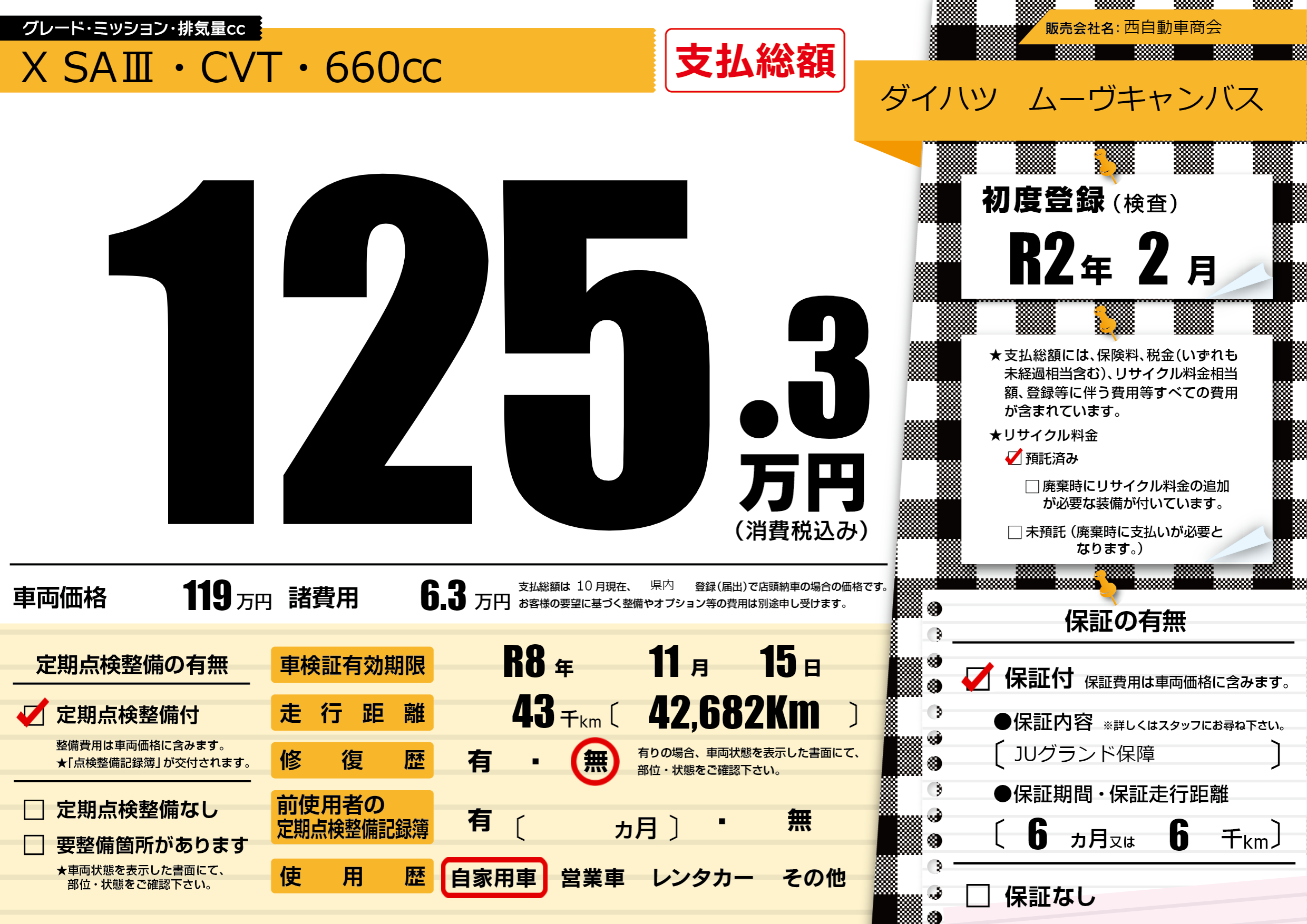 | 走行キロ | 4.3万km | 初年度登録 | R2年2月 |