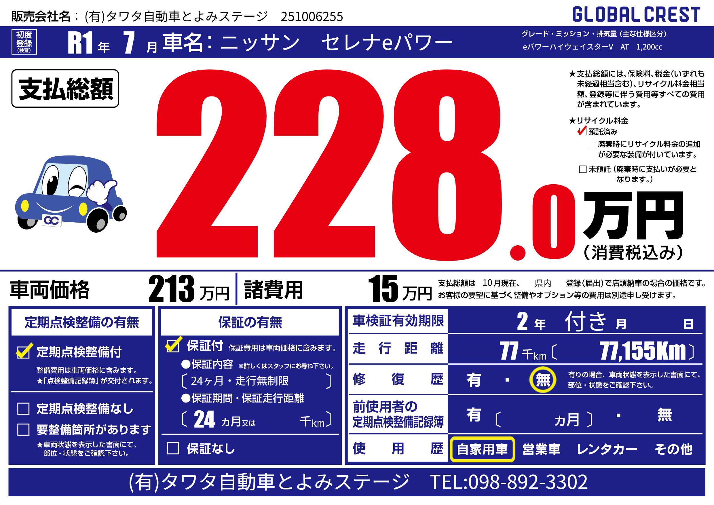 | 走行キロ | 7.7万km | ||
