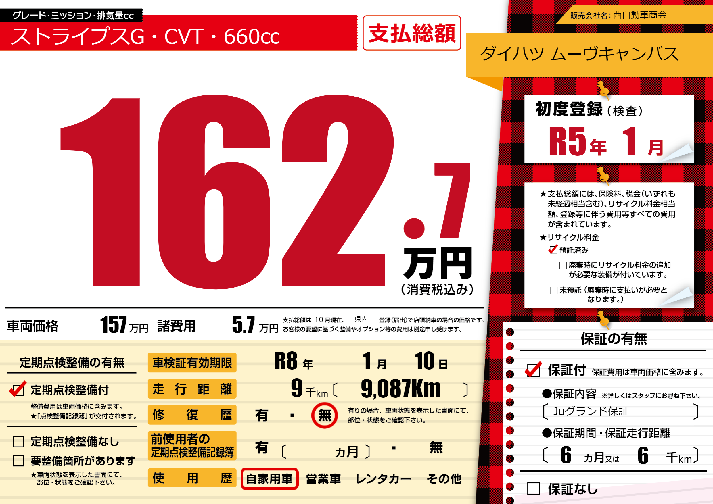 なし | 車検制限 | R8年1月10月 |