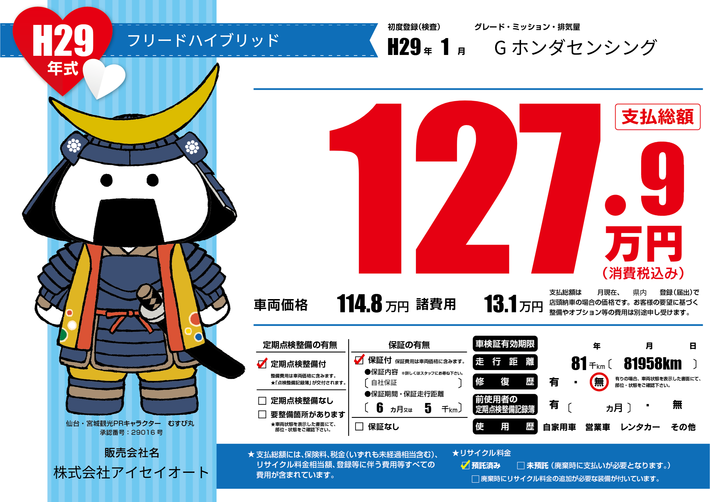 保証付き 保証内容(自社保証) 6ヶ月または5千km |