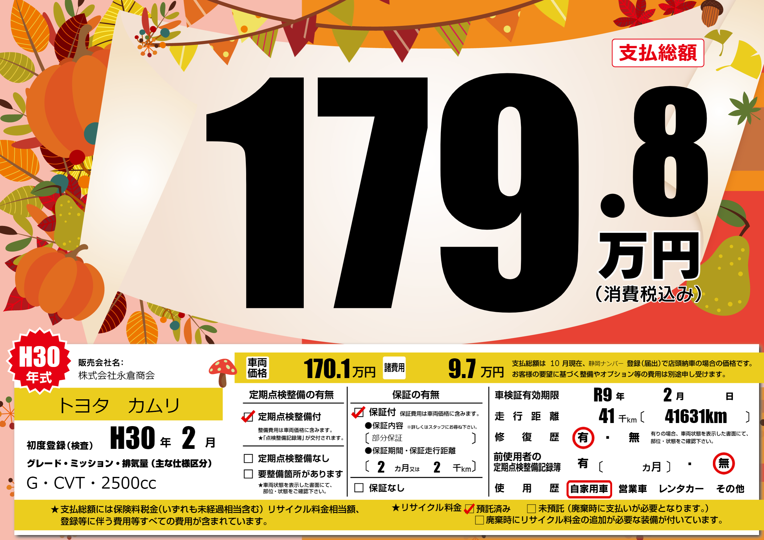 | 初年度登録 | H30年2月 | ||