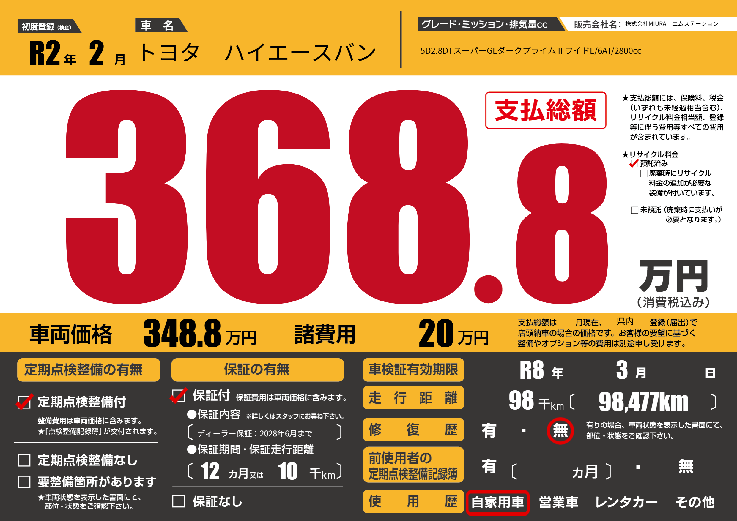 なし | 車検制限 | R8年3月---月 |