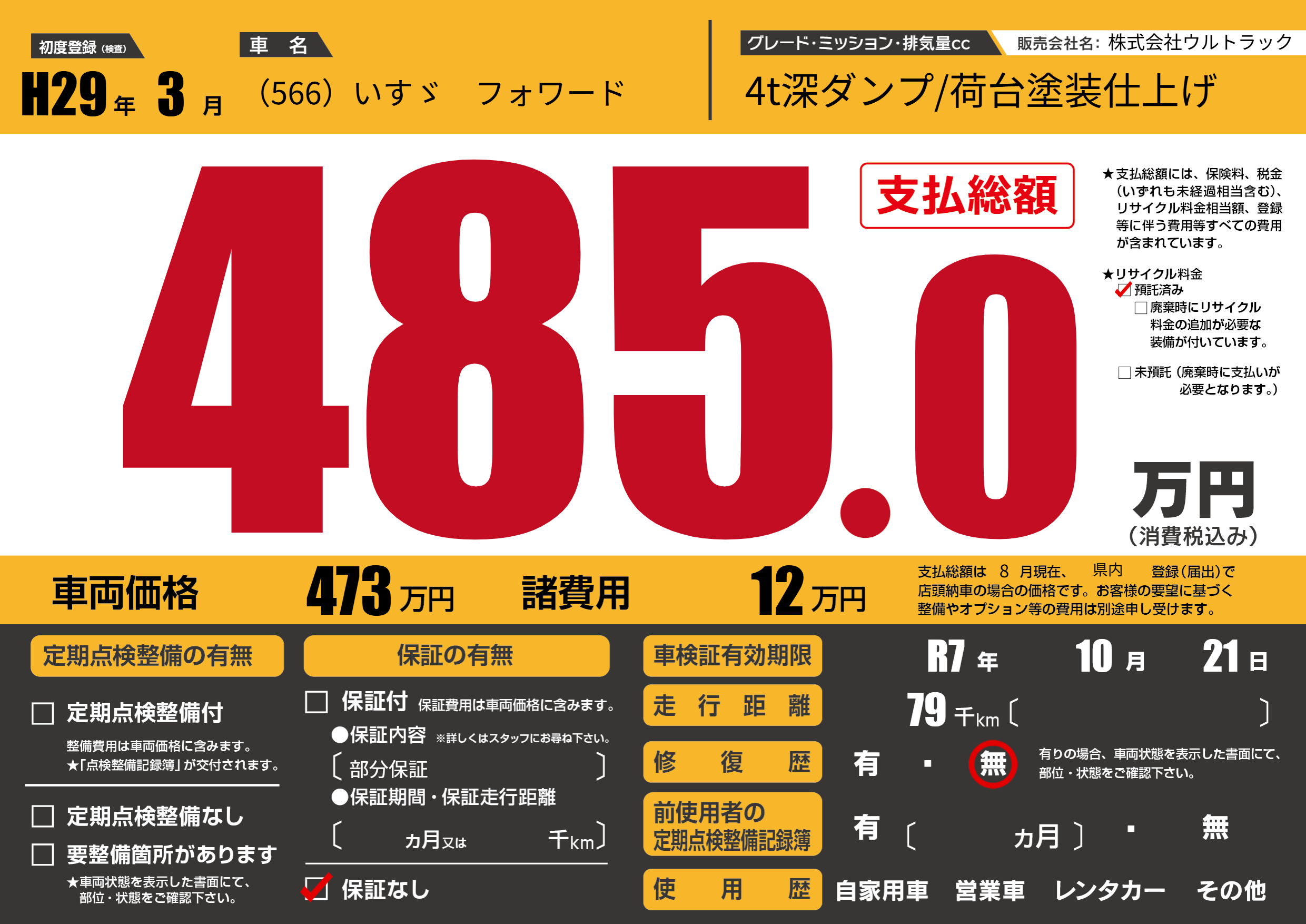 | 車名 | (566)いすゞ フォワード | グレード ミッション 排気量 |