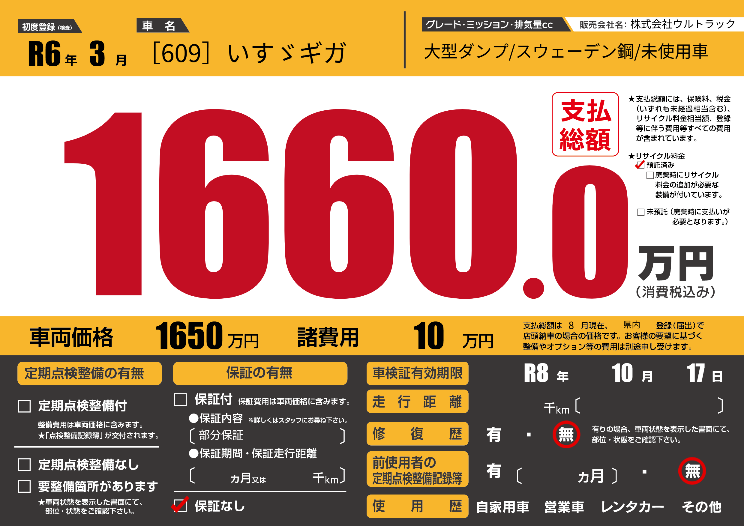 | 車名 | [609]いすゞギガ | グレード ミッション 排気量 |