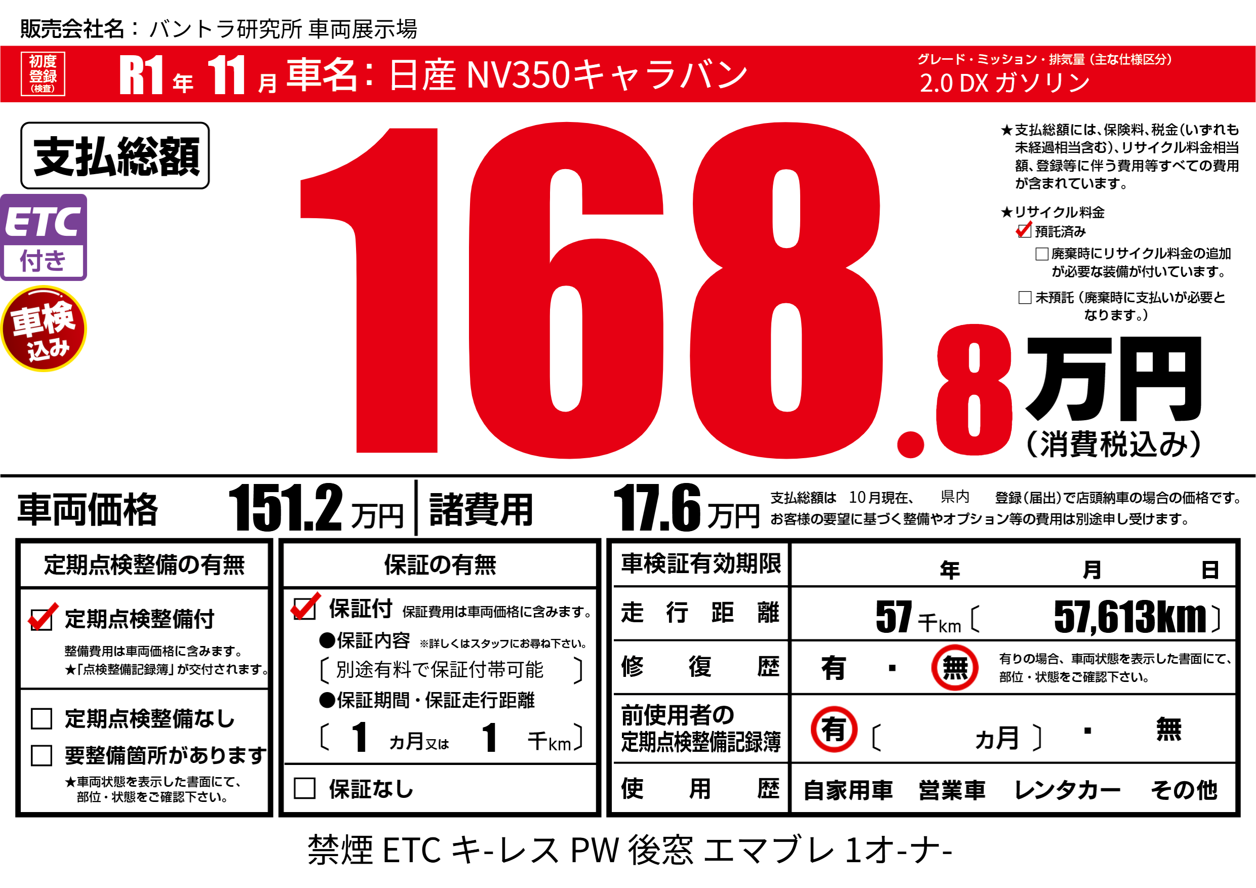 | 車検制限 | - 年 - 月 - 日 | ||