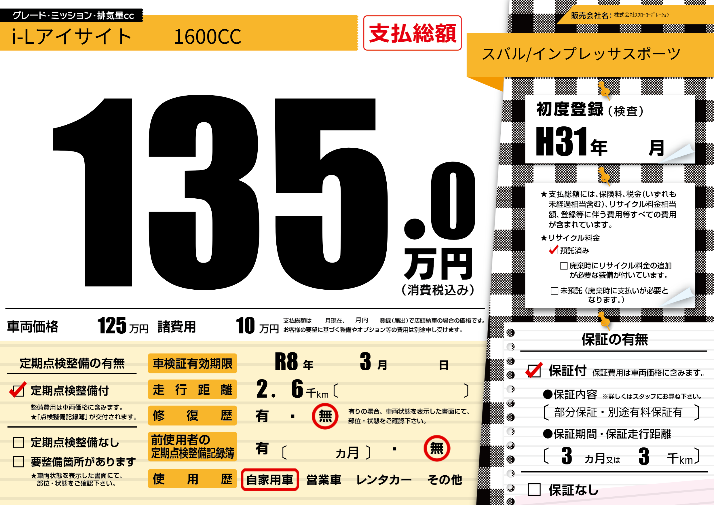 なし | 車検制限 | R8年3月---月 |