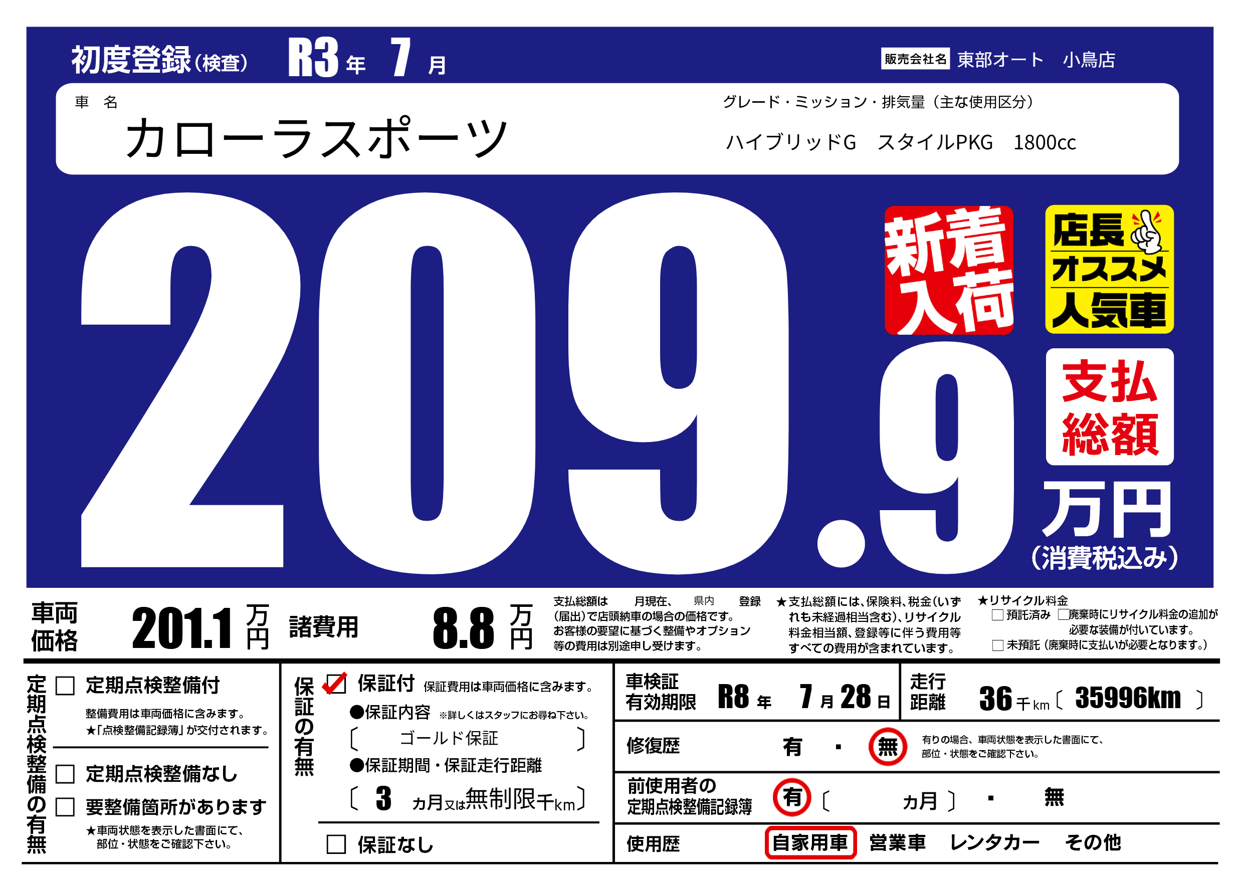 | 車検制限 | R8年 7月 28日 | ||