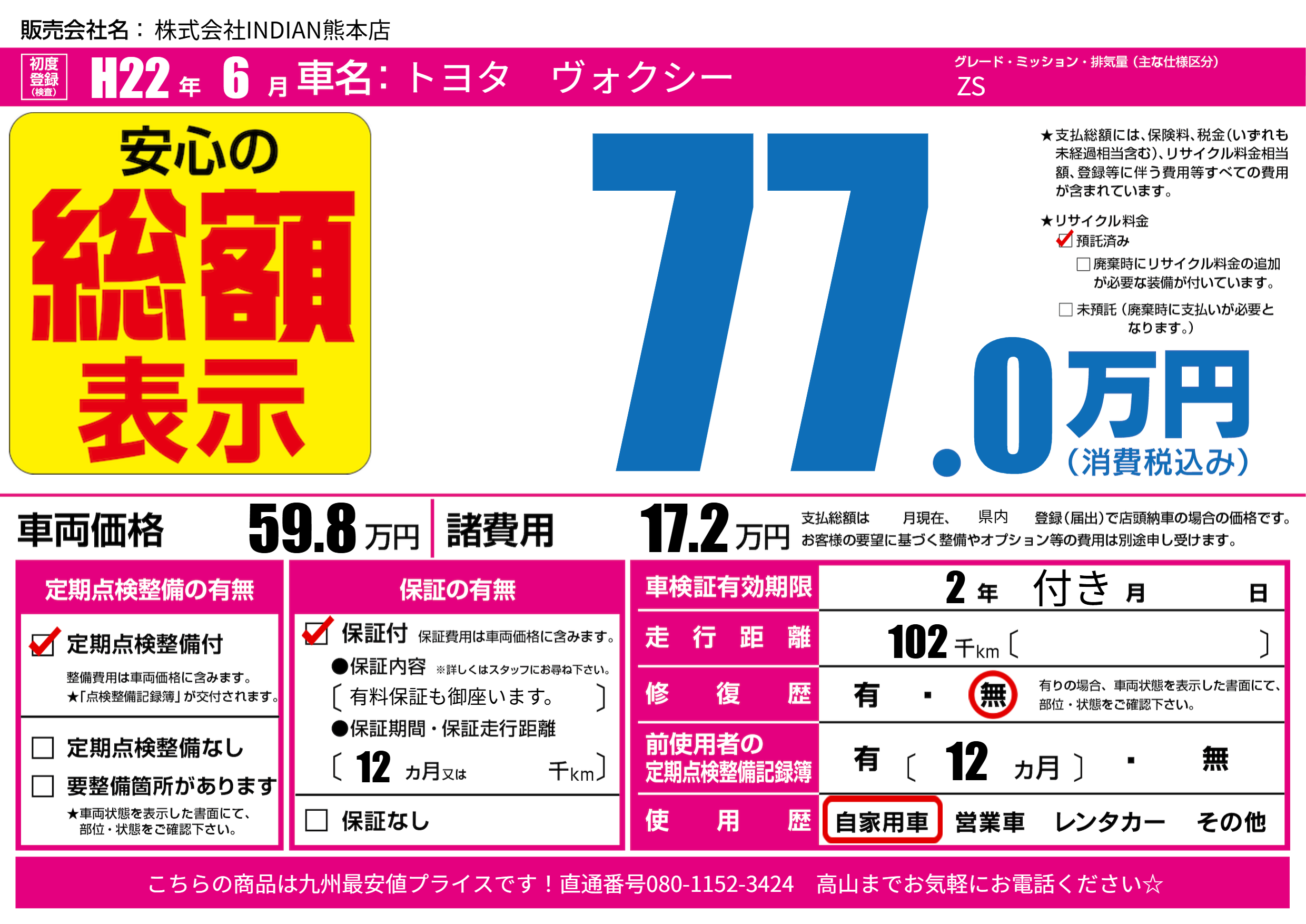 なし | 車検制限 | 2年付き月---月 |