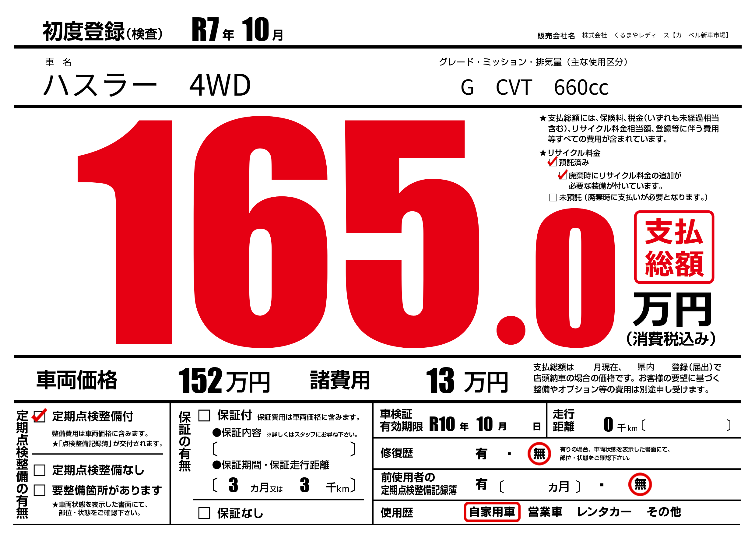 なし | 車検制限 | R10年10月---月 |