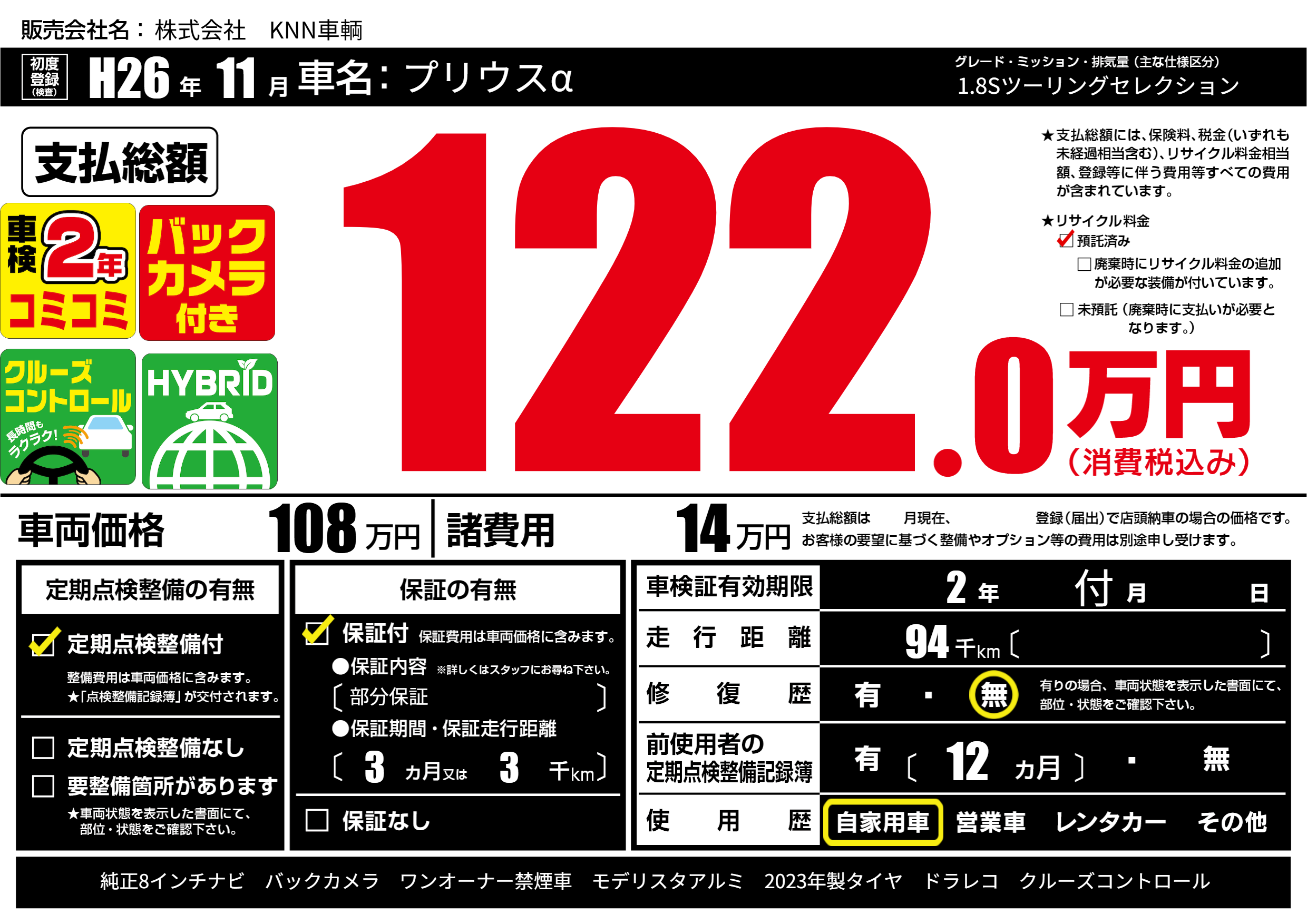 なし | 車検制限 | 2年付月---月 |