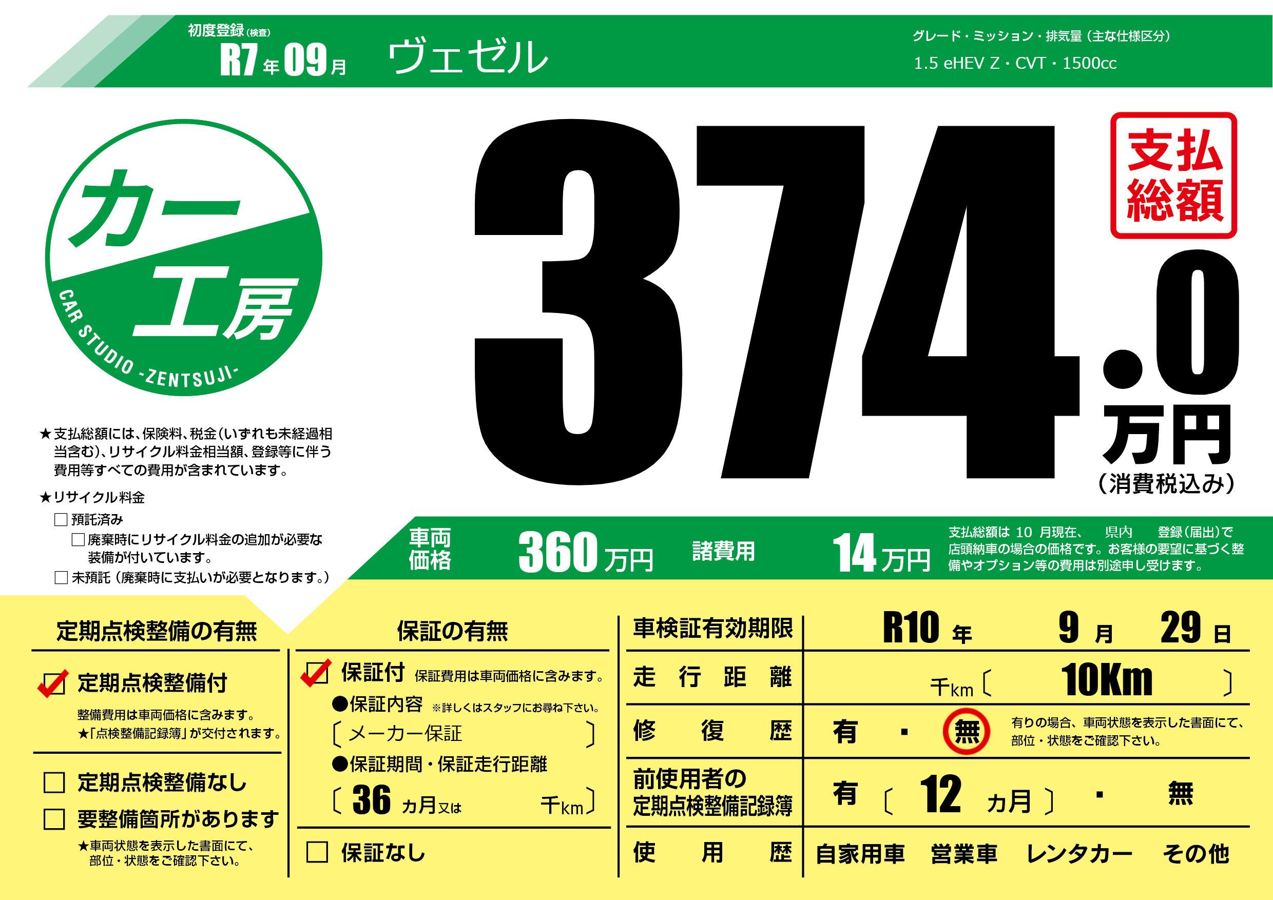 1.5 eHEV Z・CVT・1500cc |