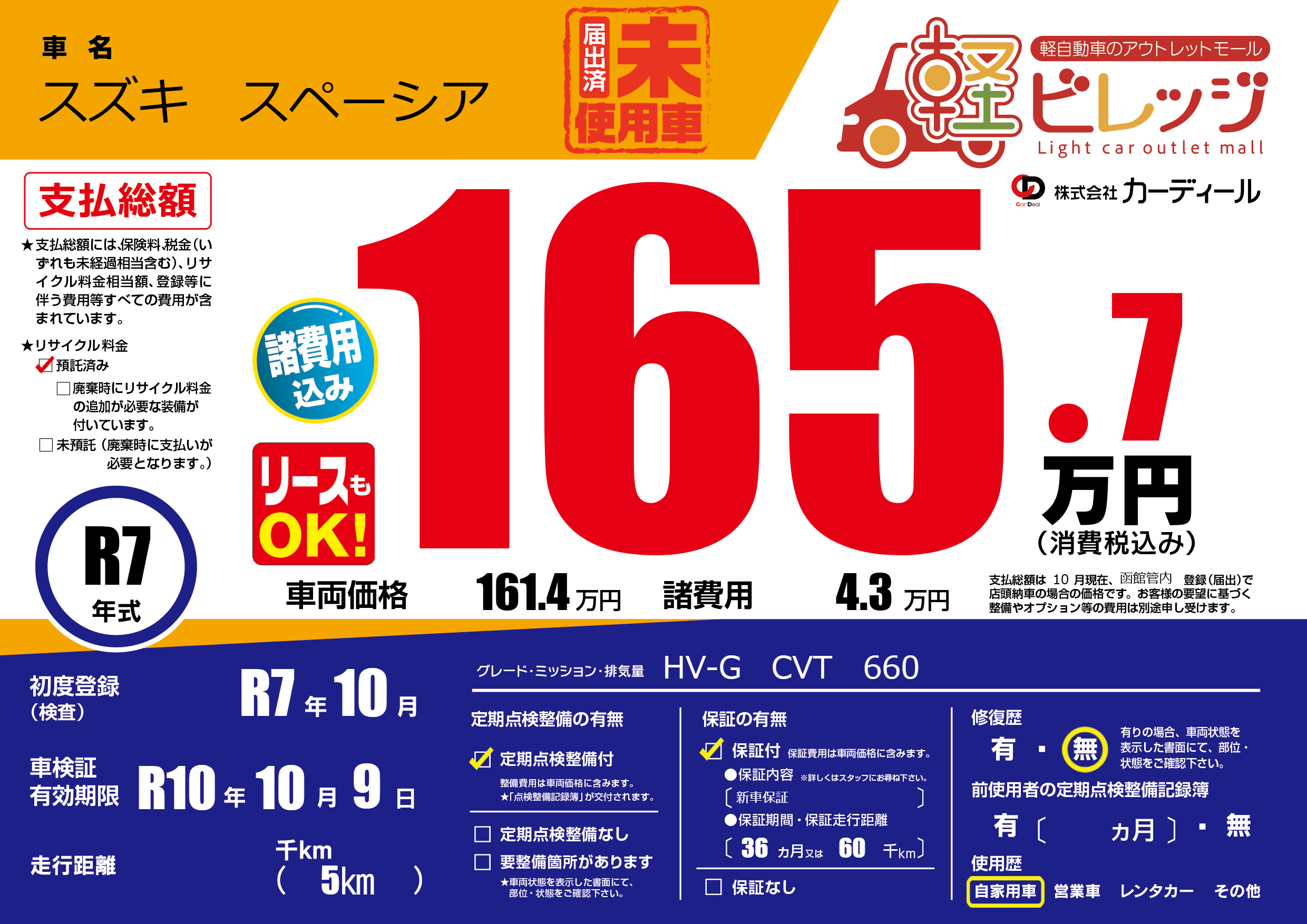 | 初年度登録 | R7年10月 | ||