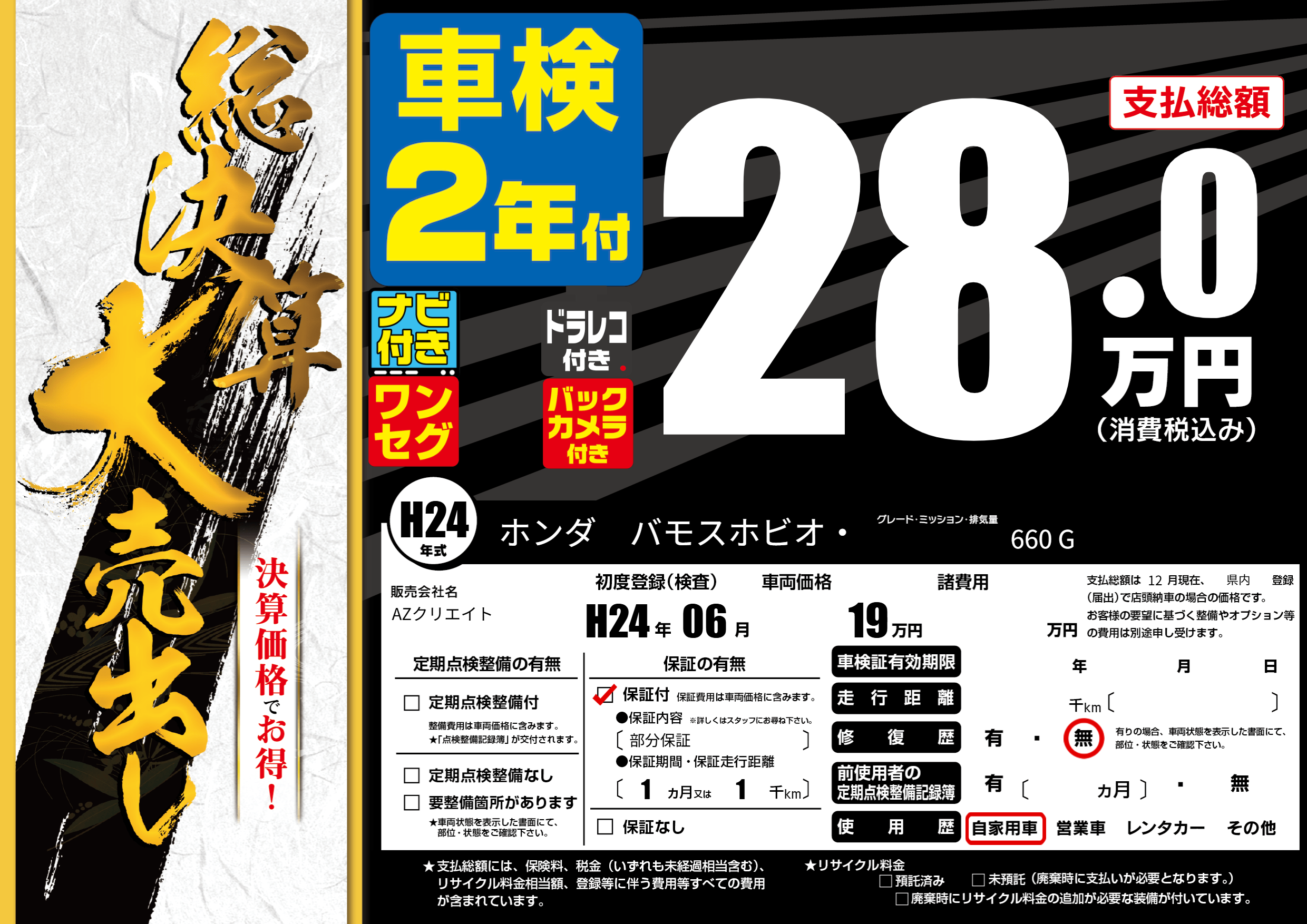 | 車名 | ホンダ バモスホビオ・ | グレード ミッション 排気量 |