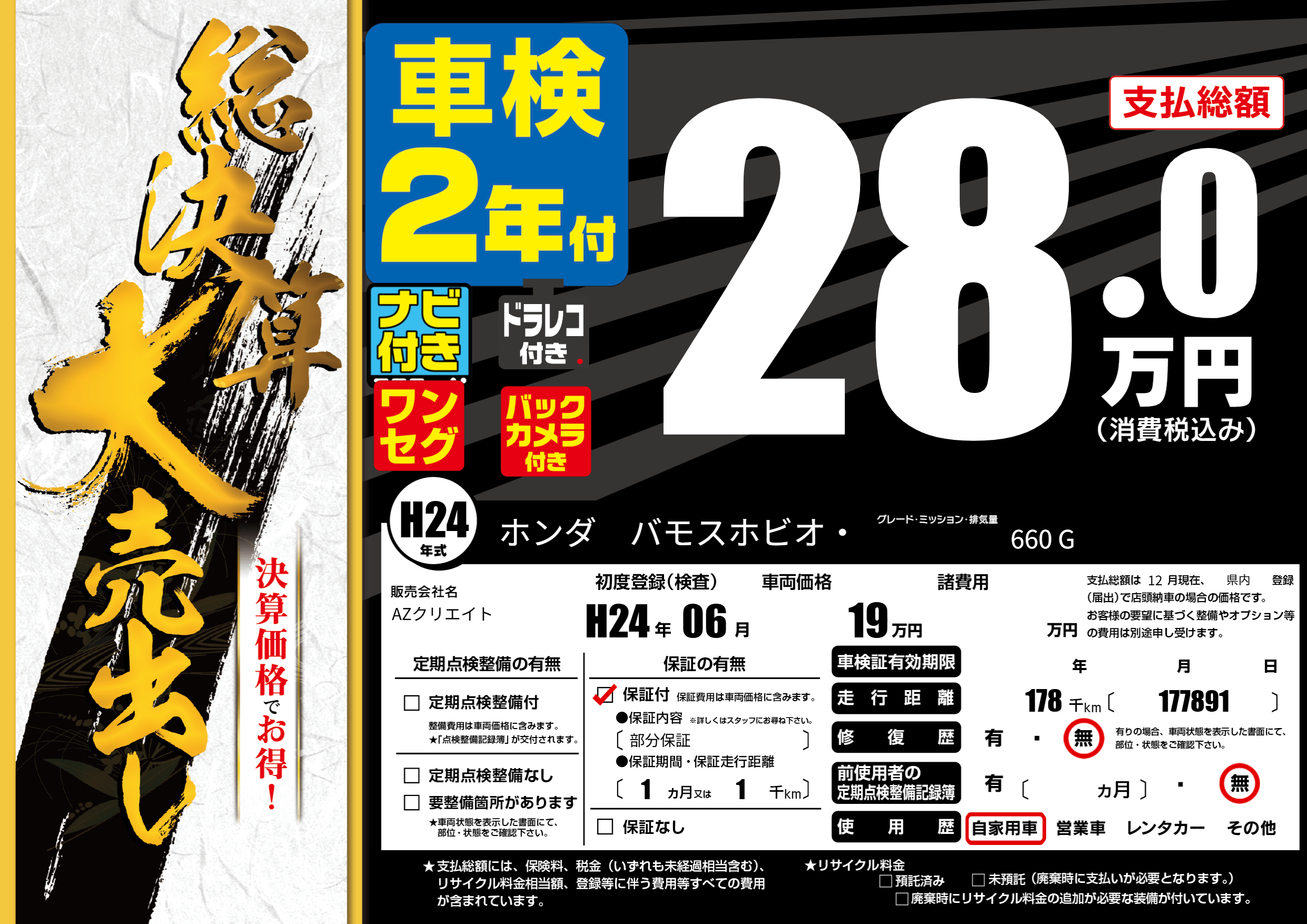 | 走行キロ | 17.8万km | 初年度登録 | H24年06月 |