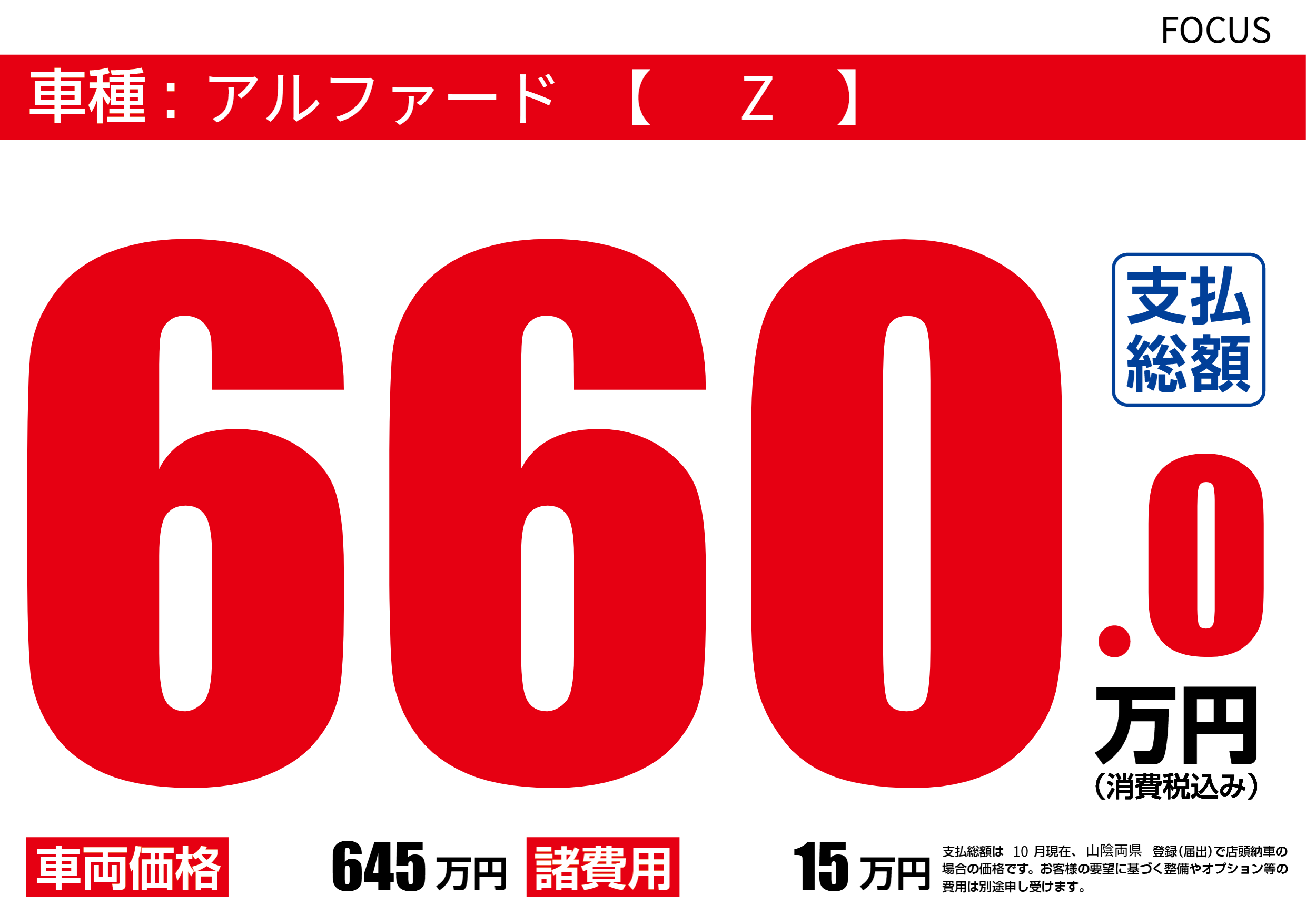 | 車名 | アルファード 【 Z 】 | グレード ミッション 排気量 |