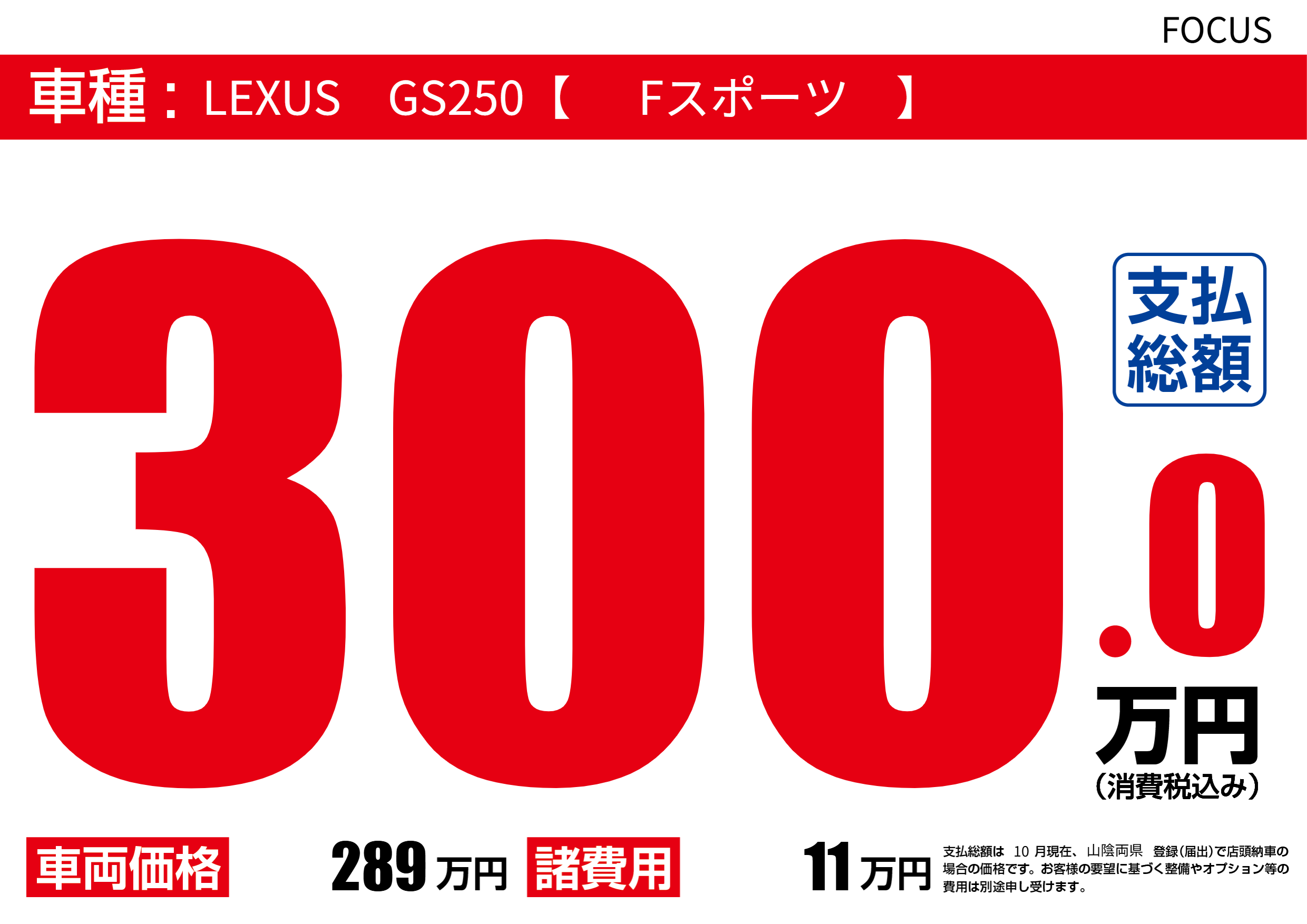| 車名 | LEXUS GS250【 Fスポーツ 】 | グレード ミッション 排気量 |