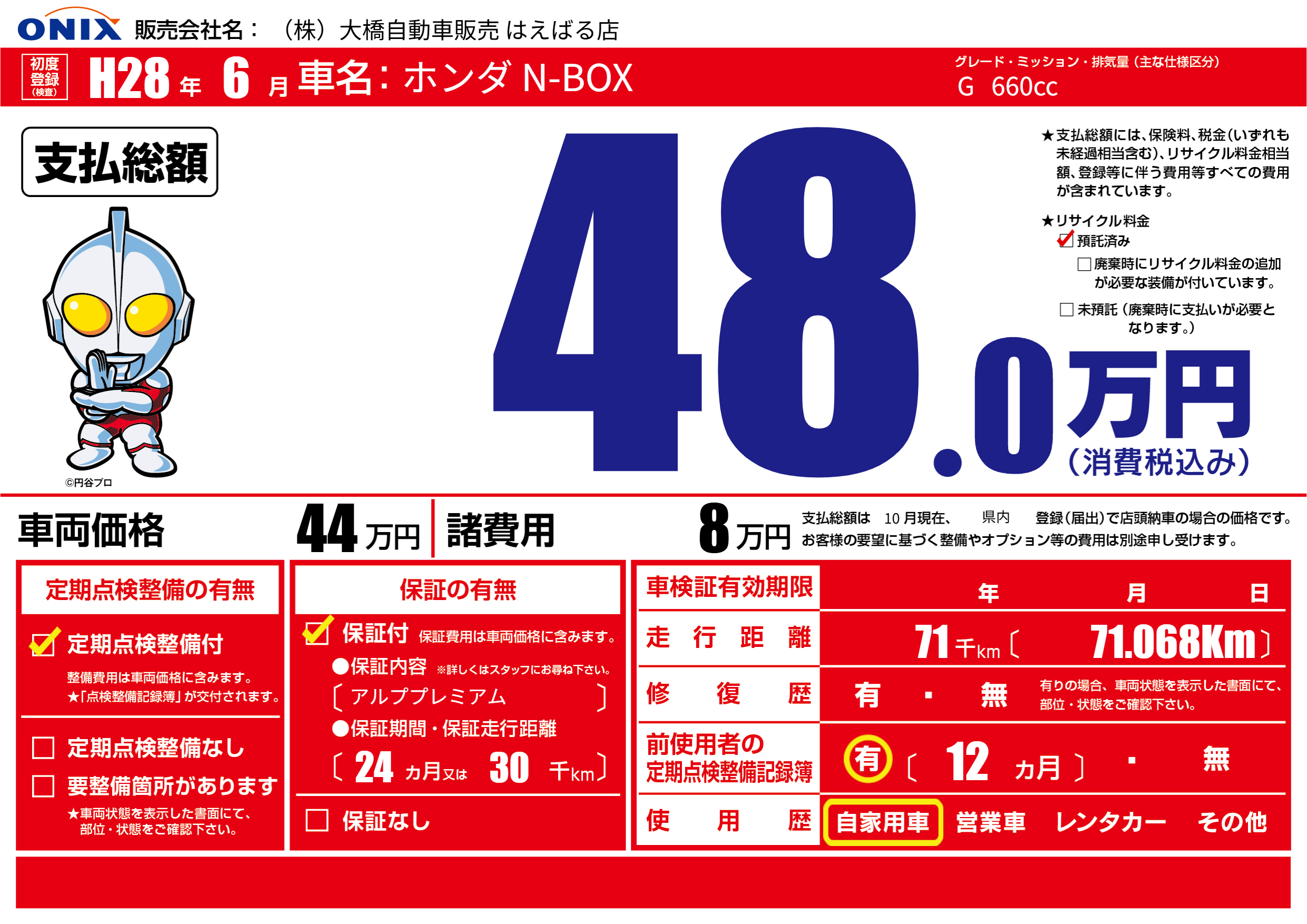 | 初年度登録 | H28年6月 | ||