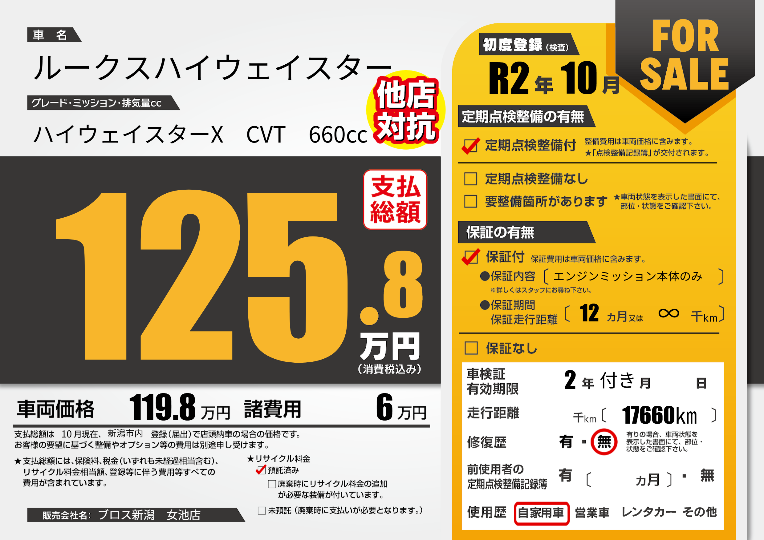 | 走行キロ | - | 初年度登録 | R2年10月 |