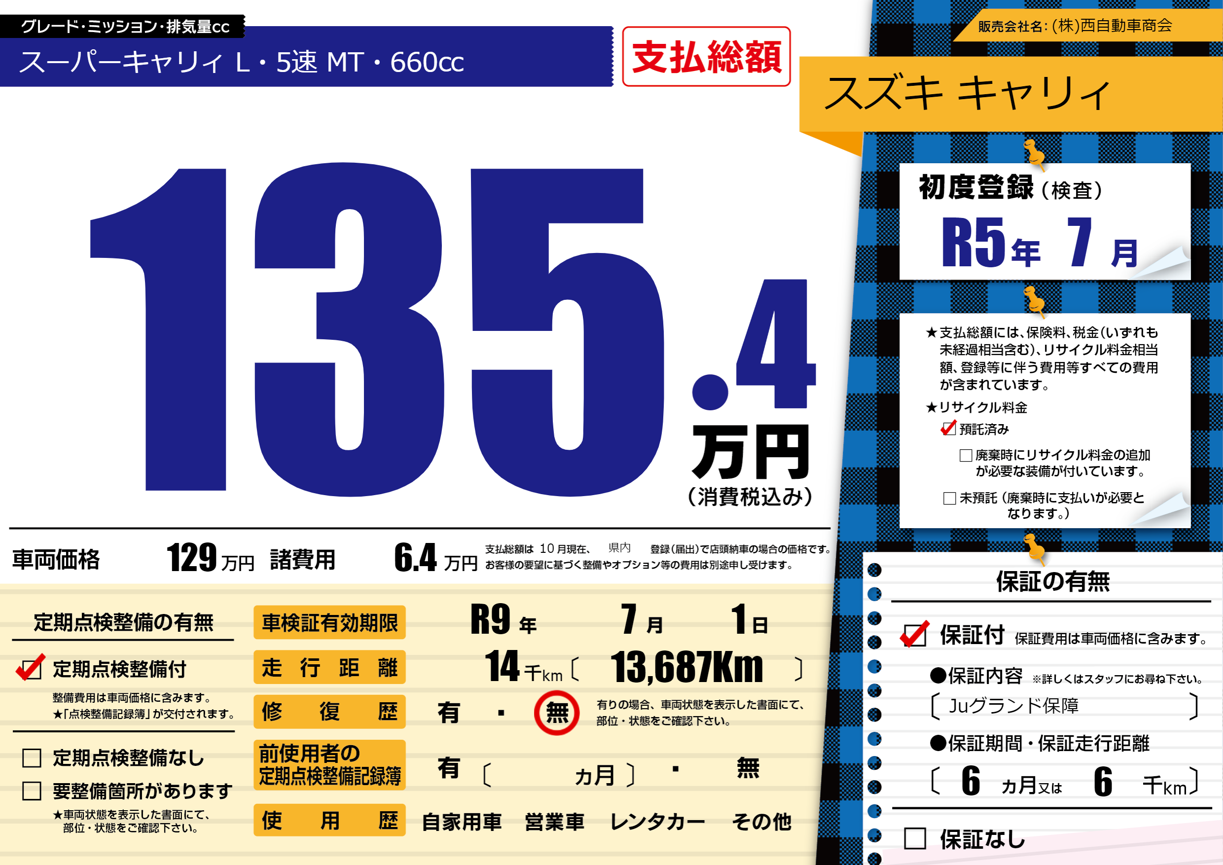 | 走行キロ | 1.4万km | 初年度登録 | R5年7月 |