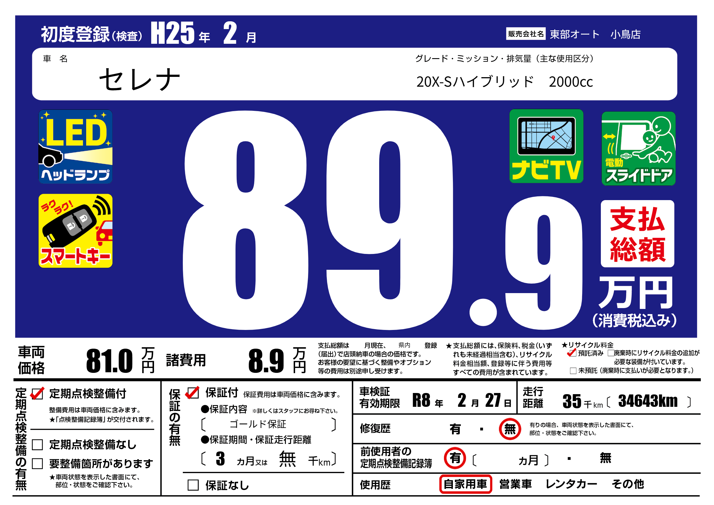 保証付き 保証内容( ゴールド保証) 3ヶ月または(無)千kmまで |