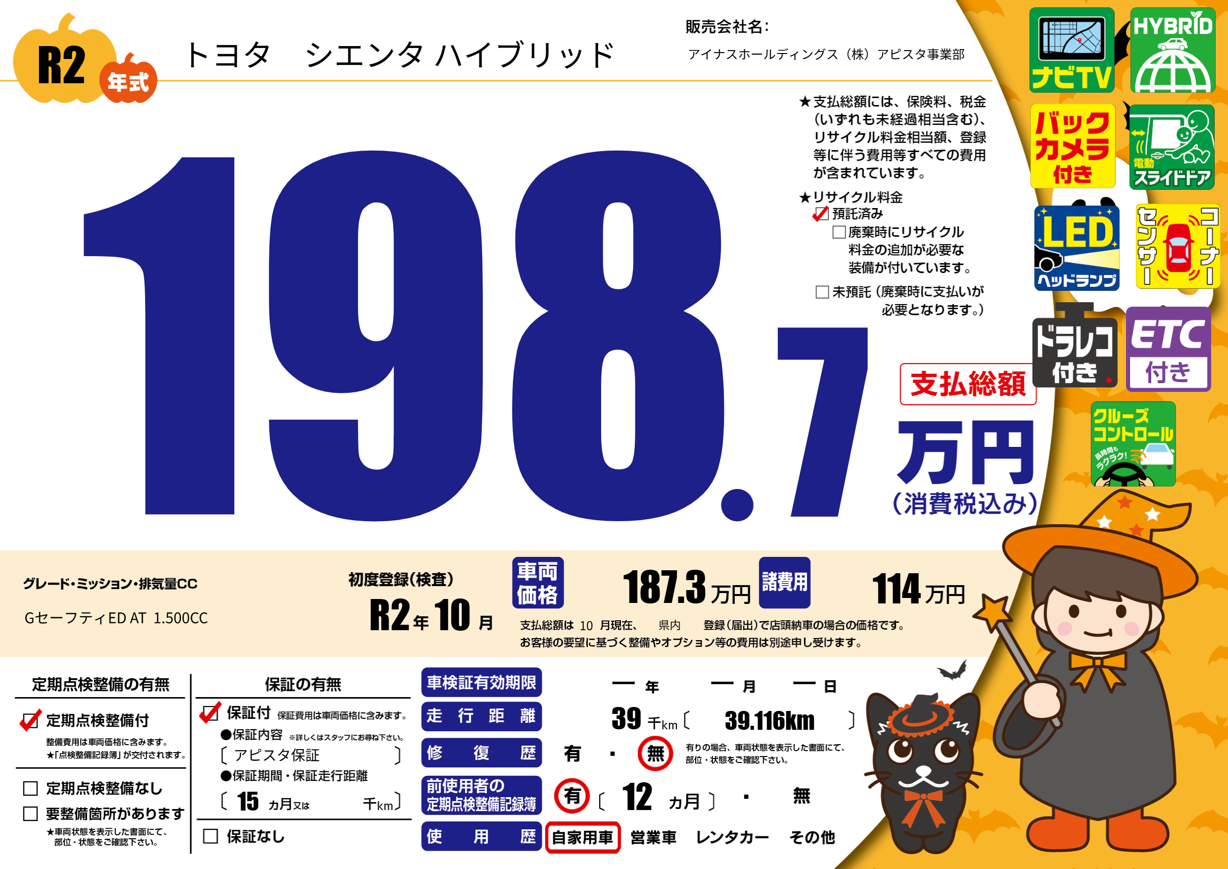 | 走行キロ | 3.9万km | ||