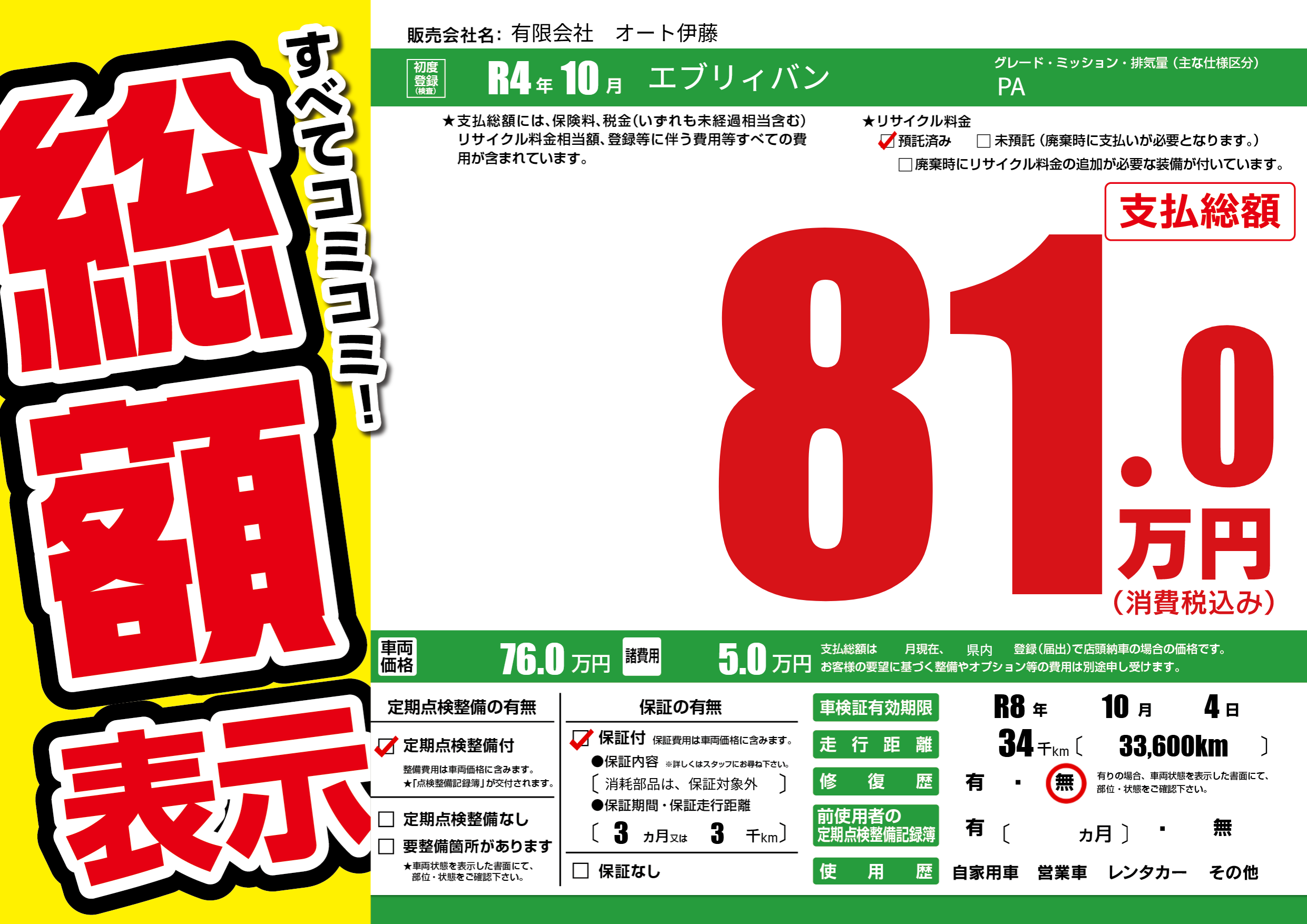 | 車検制限 | R8年 10月 4日 | ||