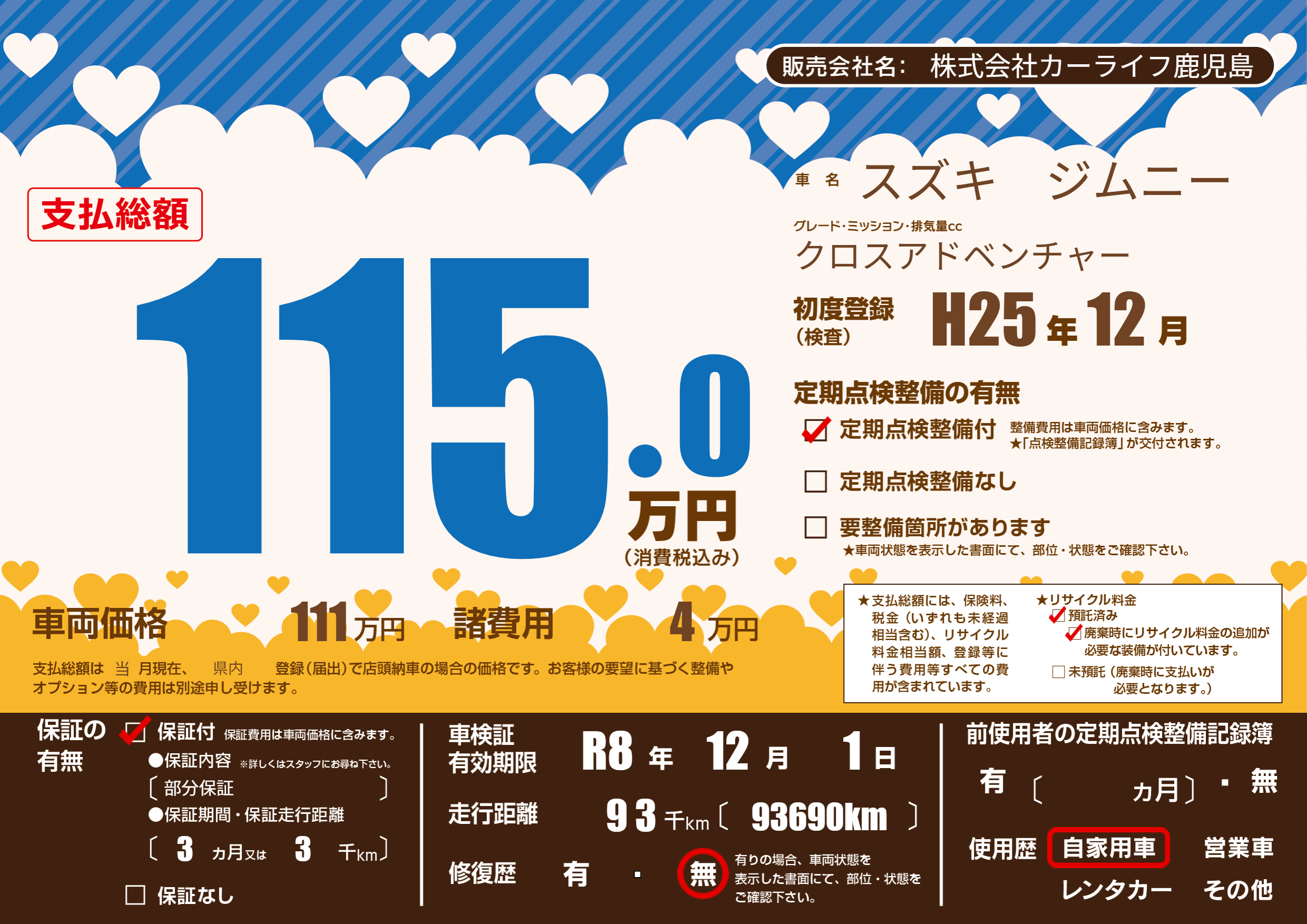 保証付き 保証内容(部分保証) 3ヶ月または(3)千kmまで |